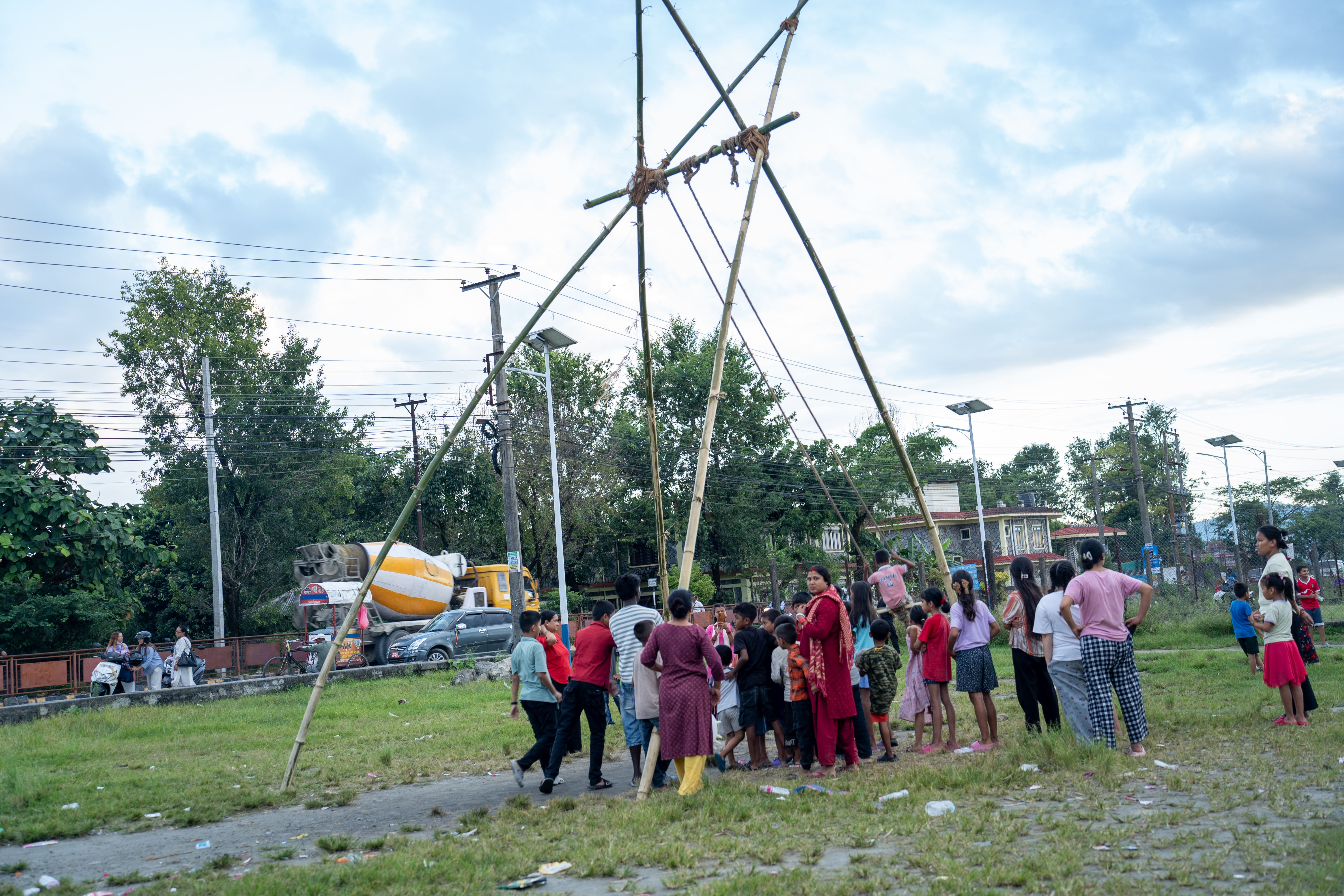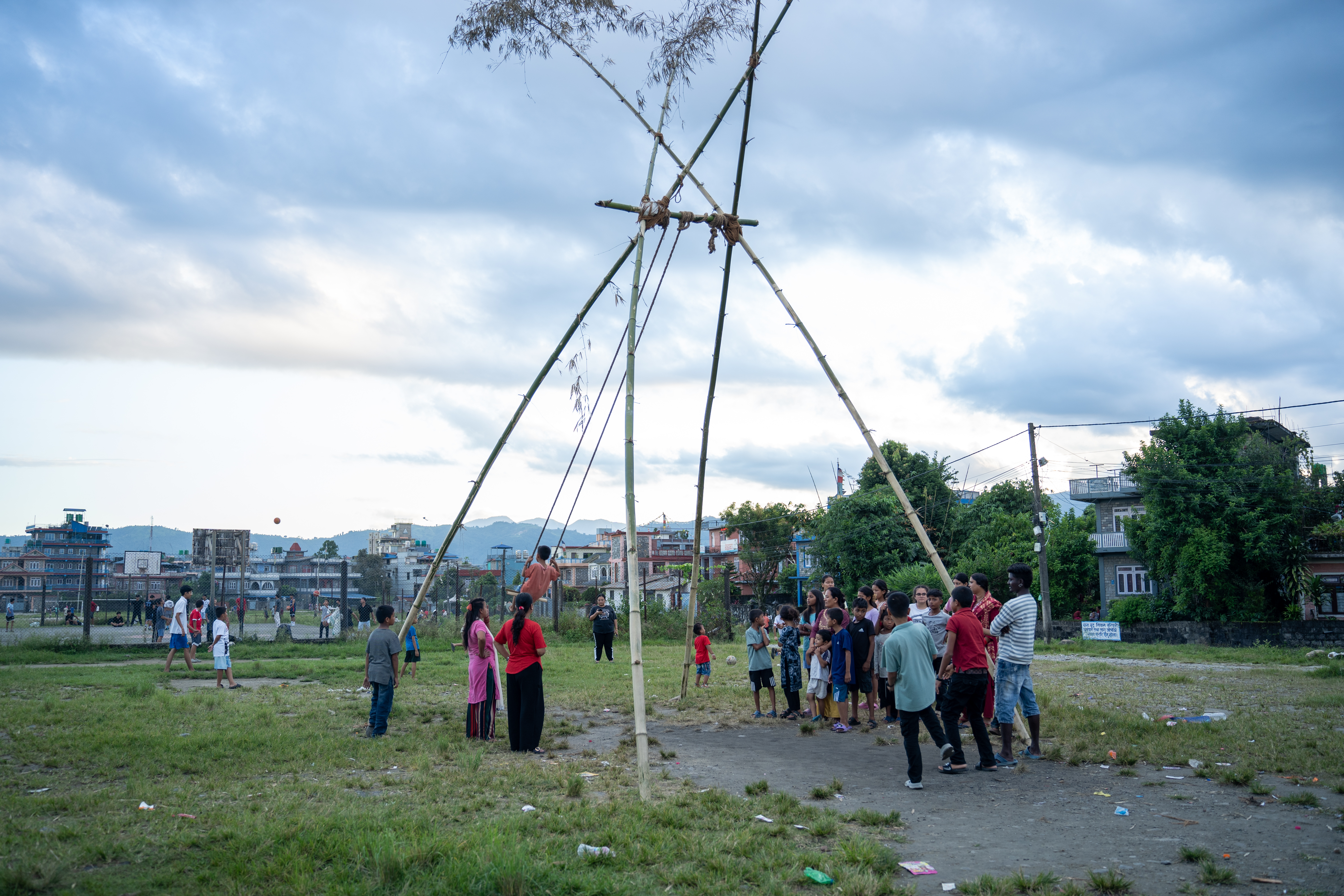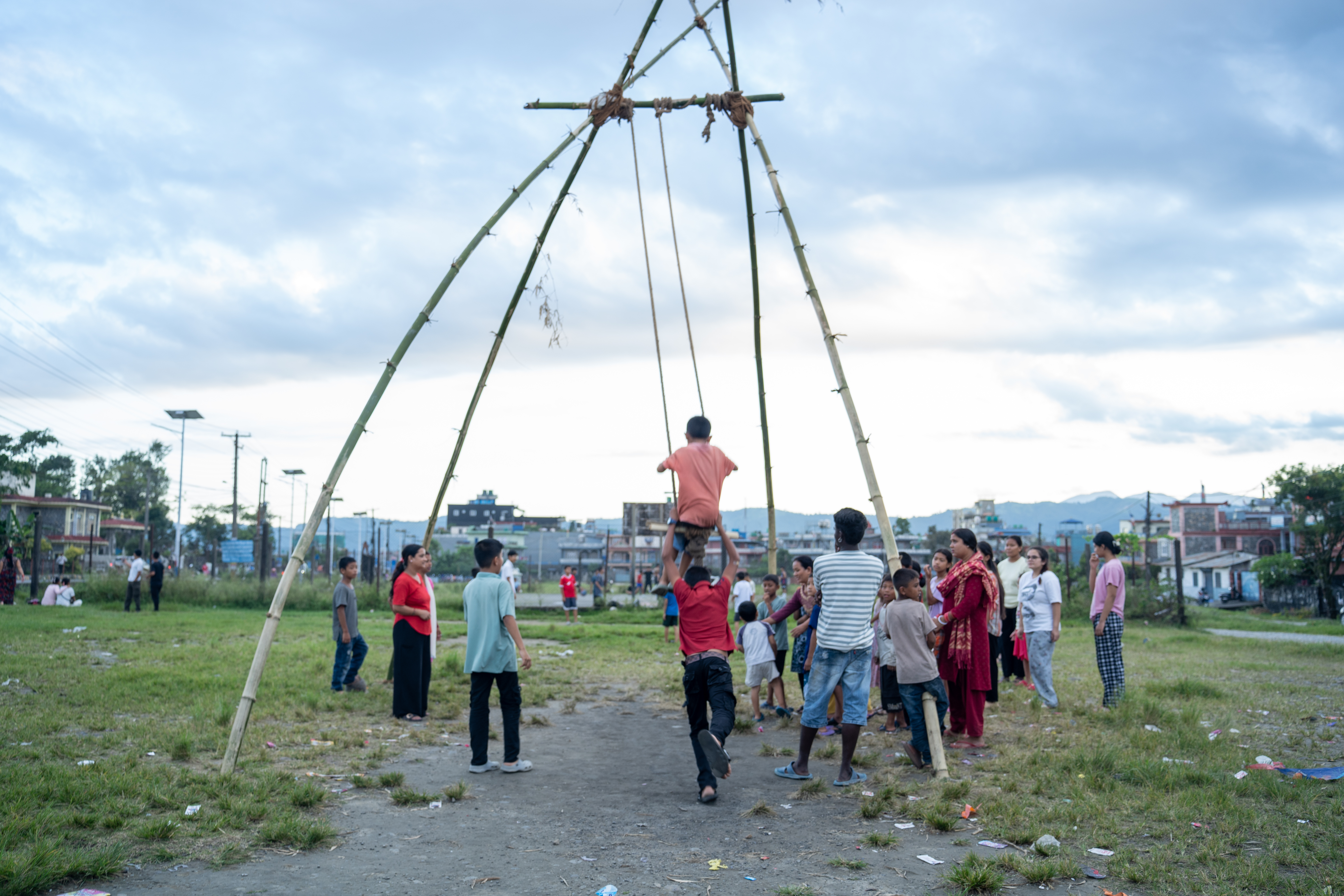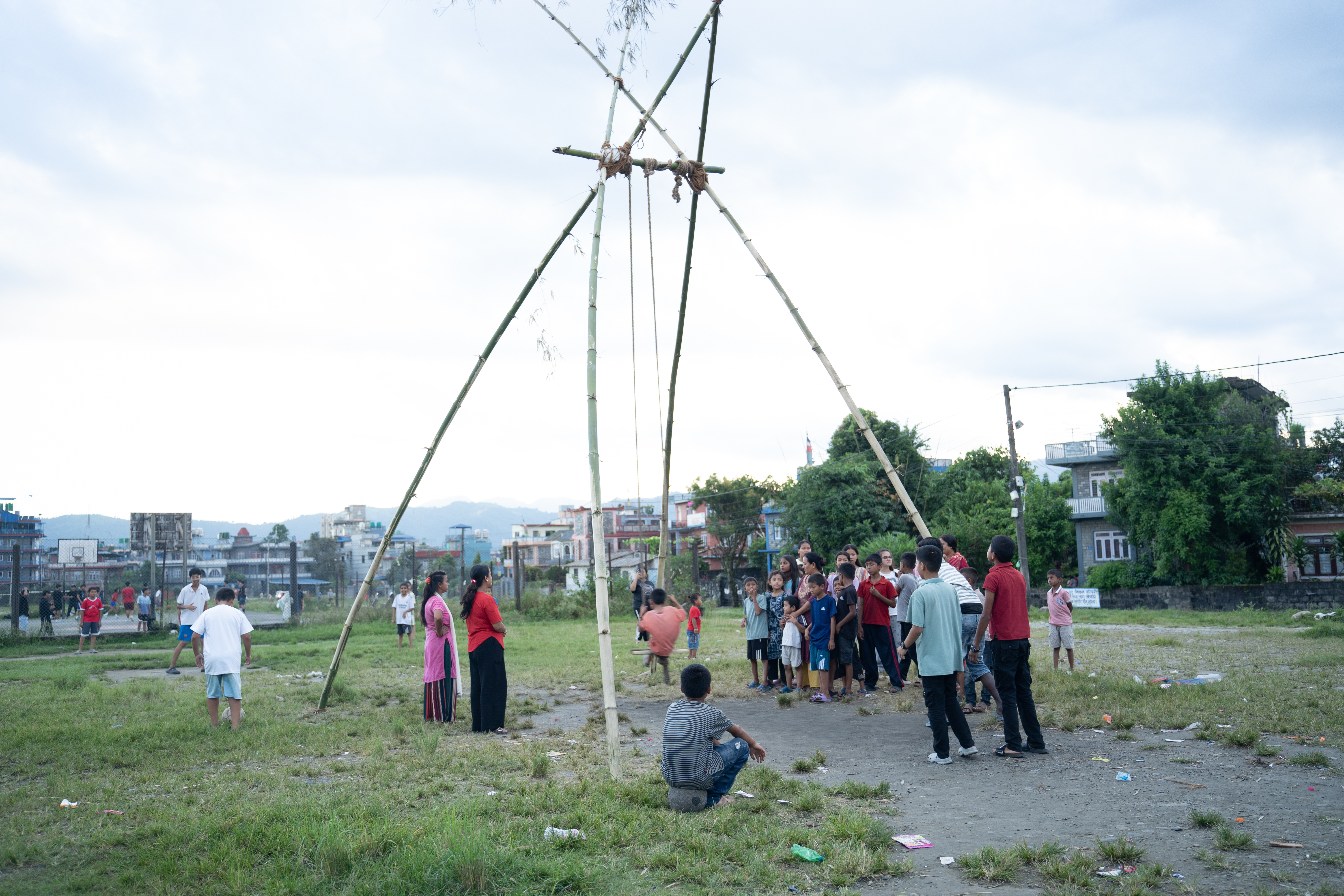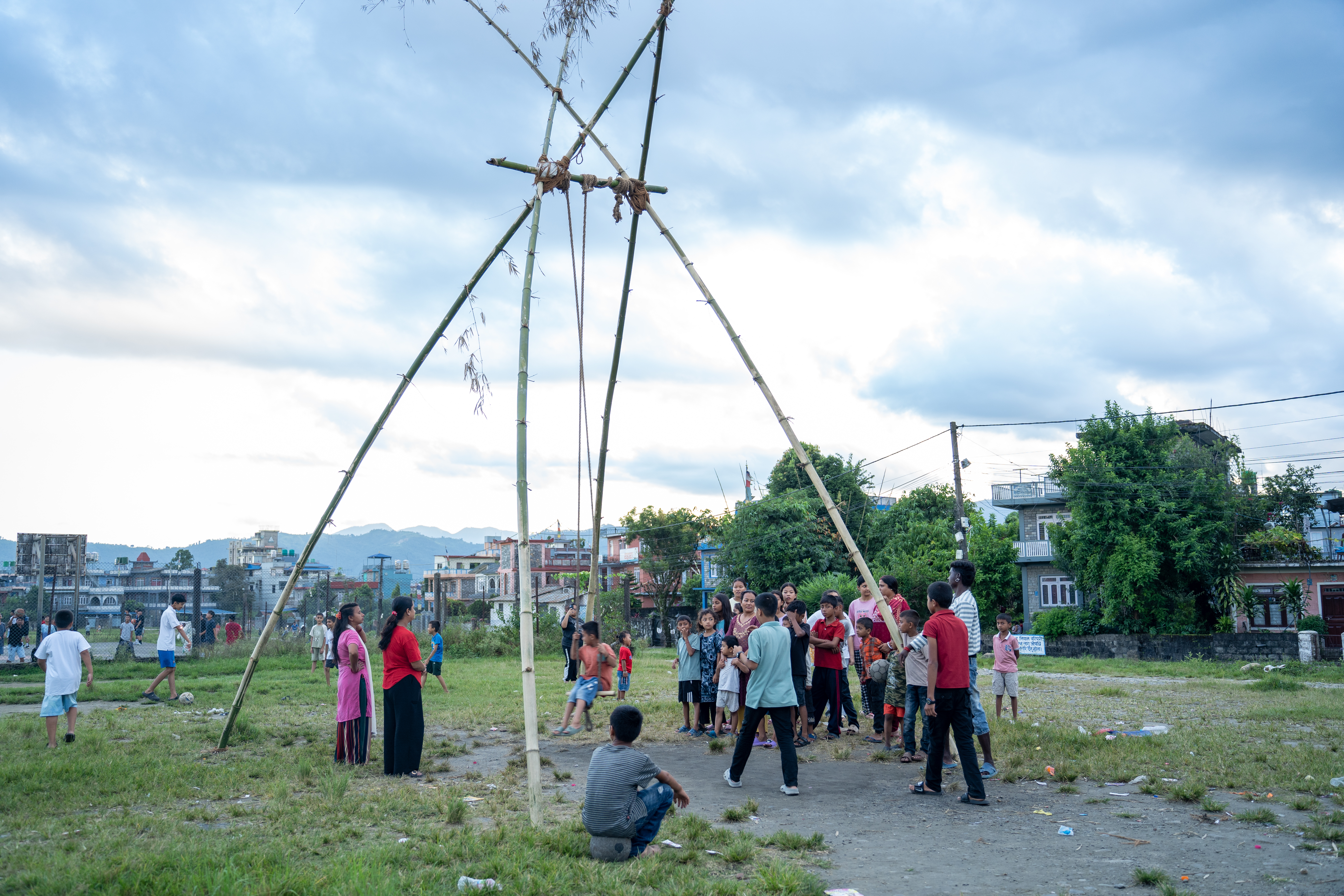 अमरसिंह चोकस्थित खुला मैदानमा स्थानीय युवाले बाँसका डाँठ प्रयोग गरी परम्परागत लिङ्गे पिङ तयार पारेका छन्।
