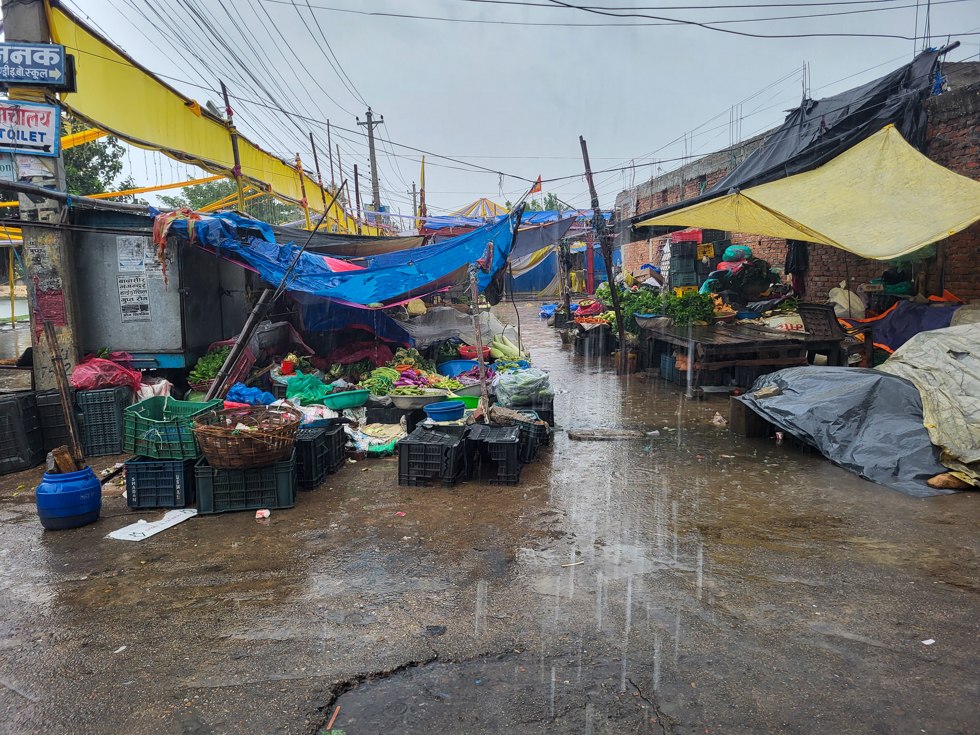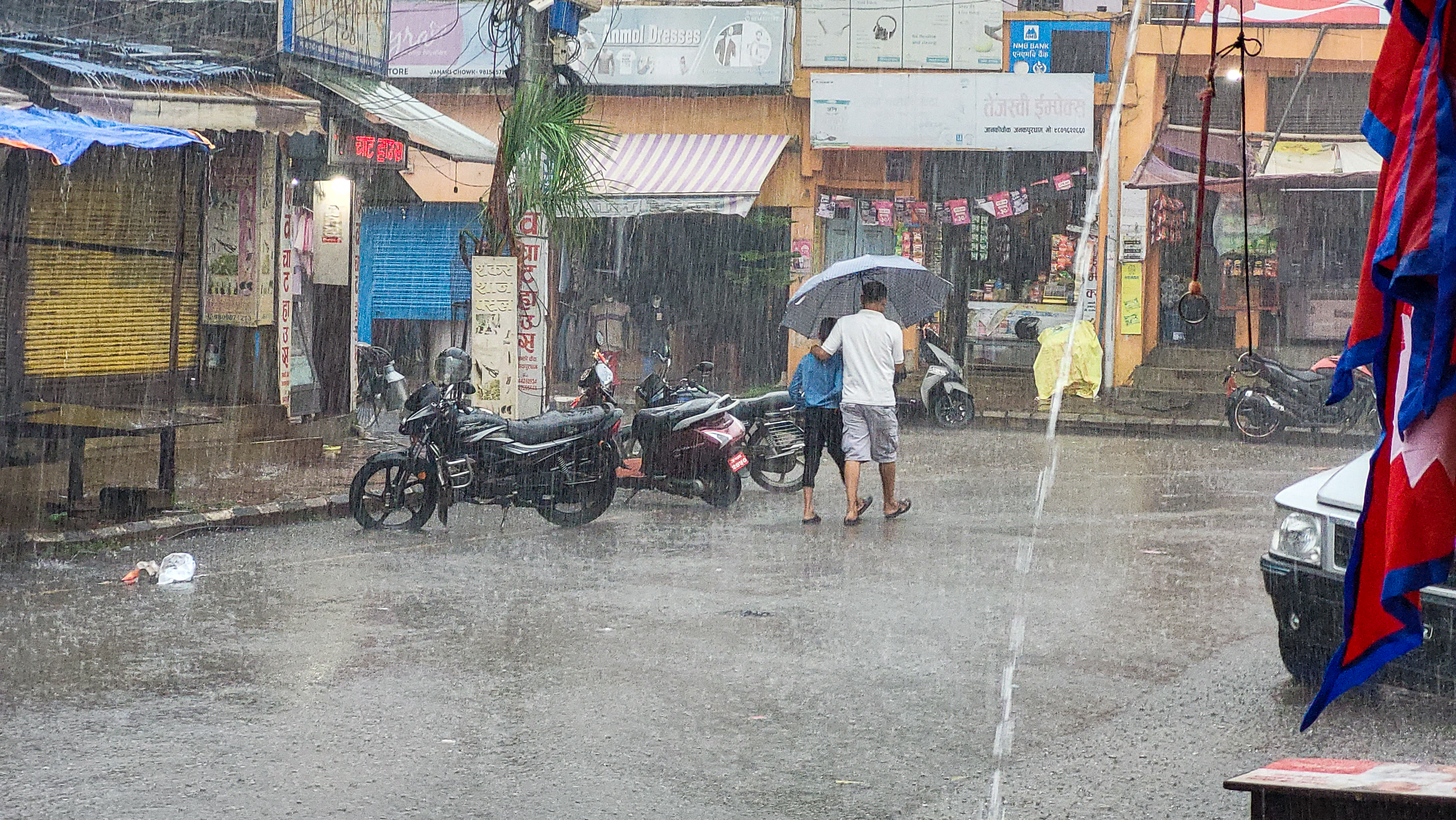 जनकपुरधाम। शुक्रबार रातिदेखि निरन्तर भइरहेको वर्षाका कारण धनुषाका विभिन्न स्थानहरु जलमग्न भएका छन्। जनकपुरधाम, ढल्केवर, महेन्द्रनगरलगायत सहरी क्षेत्रसहित ग्रामिण भेगका गाउँहरु जलमग्न भएका छन् । बजारका अधिकांश पसलहरु बन्द छन् भने चहलपहल पनि शून्य देखिएको छ।