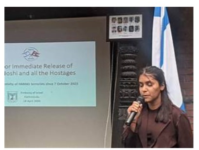 त्यसमध्ये पनि धेरै इजराइलमा बस्ने नेपालीहरूले तपाईंको लागि त्यही रहेर न्यायको लागि र तपाईंको मुक्तिको लागि सहभागी बनिरहनु भएको छ। सबैको नाम लिनुस् खोद्दा एकजनाको नाम छुट्यो भने त्यो अन्याय हुन्छ तर तपाईँको लागि एकजना दिदी हुनुहुन्छ।