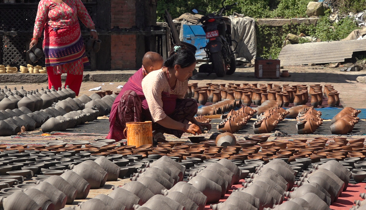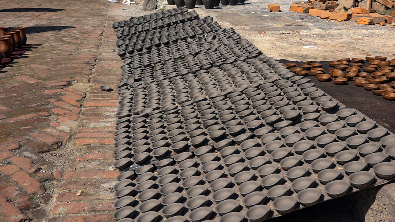 काठमाडौं । तिहार नजिकिएसँगै भक्तपुरका कुमाले समुदायलाई माटाको पाला बनाउन भ्याइनभ्याइ छ। यतिवेला भक्तपुरको पोटरी स्क्वाएरका कुमाले समुदाय पाला बनाउन र सुकाउन व्यस्त छन्।
