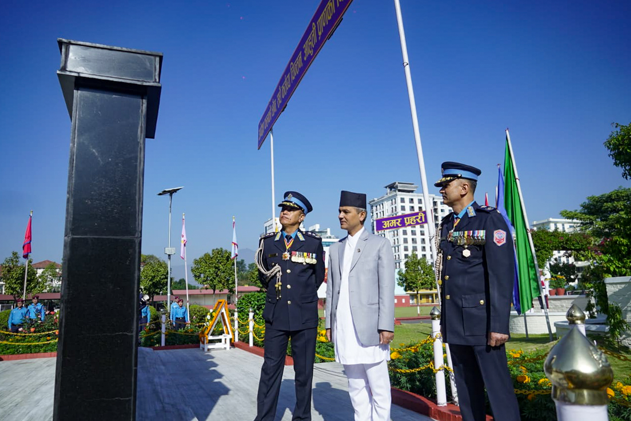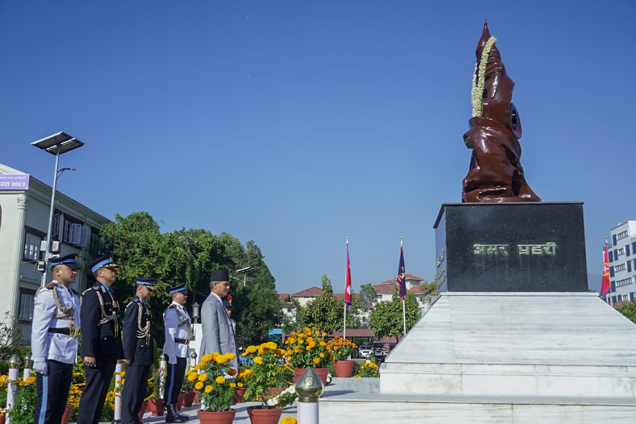 काठमाडाैं। आज नेपाल प्रहरीले ७० औँ प्रहरी दिवस मनाइरहेको छ। यस अवसरमा प्रहरी प्रधान कार्यालयमा विशेष समरोहको आयोजना समेत गरिएको छ। उक्त कार्यक्रममा गृहमन्त्री ओमप्रकाश अर्यालले कर्तव्य पालनाको सिलसिलामा ज्यान गुमाएकाका परिवारलाई अमर प्रहरीको रुपमा कदर पत्रसहित सम्मान गरिएका छन्।