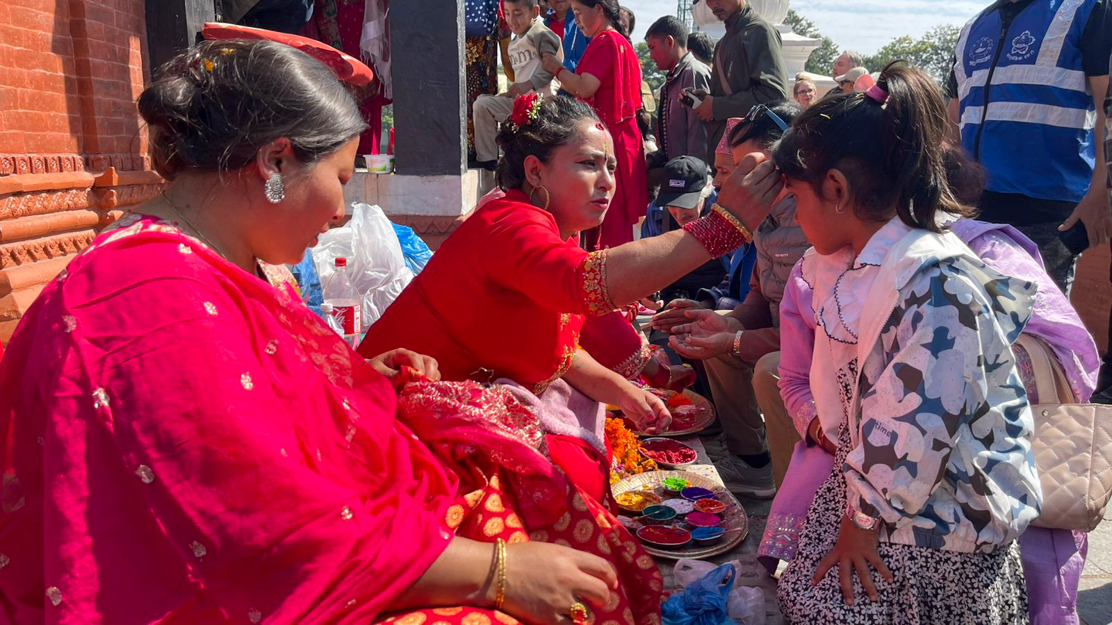 काठमाडौं । काठमाडौंको रानीपोखरीस्थित बालगोपालेश्वर मन्दिरमा बिहानैदेखि भाइटीका लगाउने र लगाइदिनेहरुको घुइँचो लागेको छ।