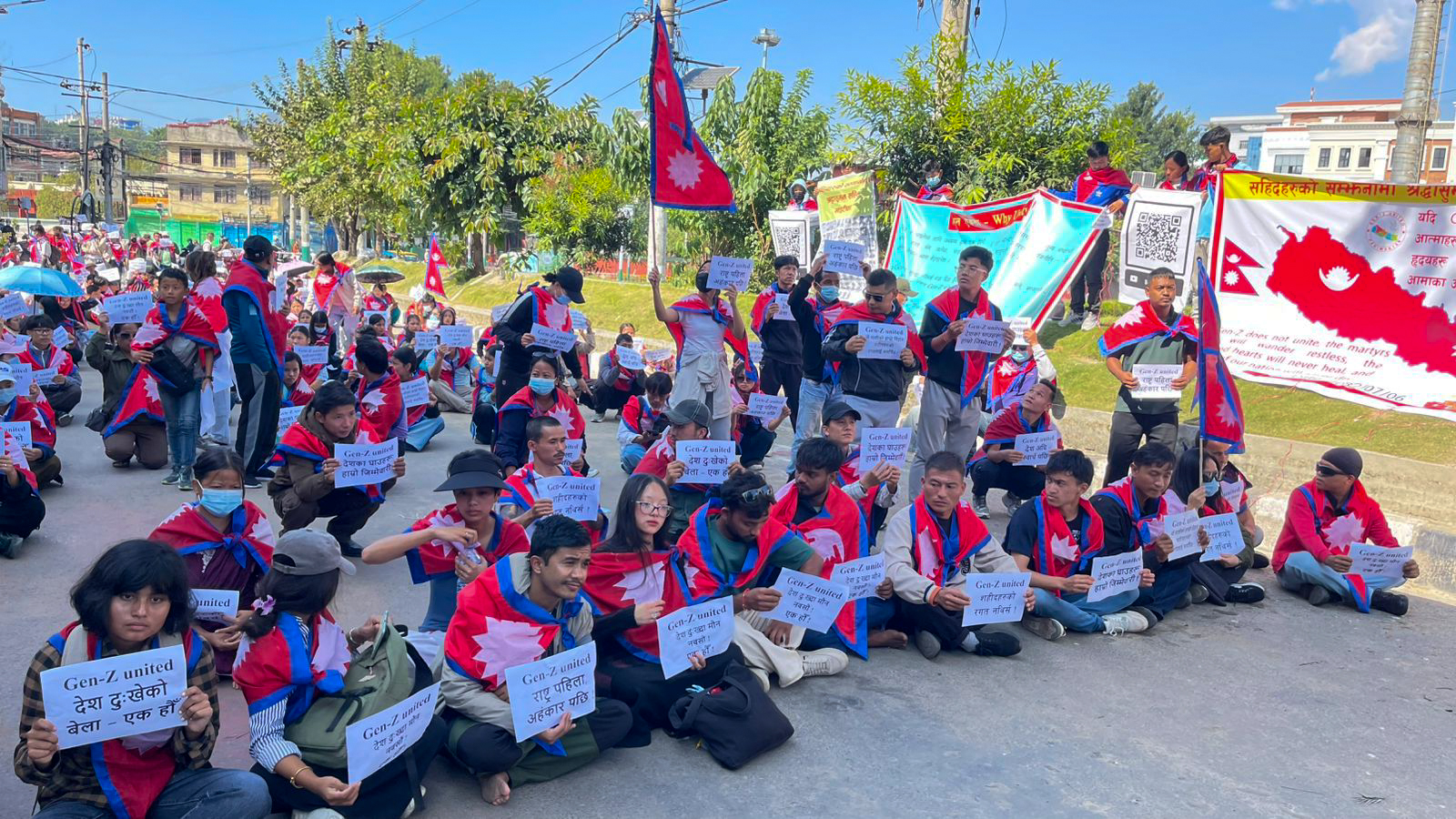 आफ्ना अधिकार र मागहरूका पक्षमा आवाज उठाउँदै जेनजी समुदायका सदस्यहरूले आज पनि माइतीघर मण्डलामा शान्तिपूर्ण आन्दोलन गरेका हुन्।