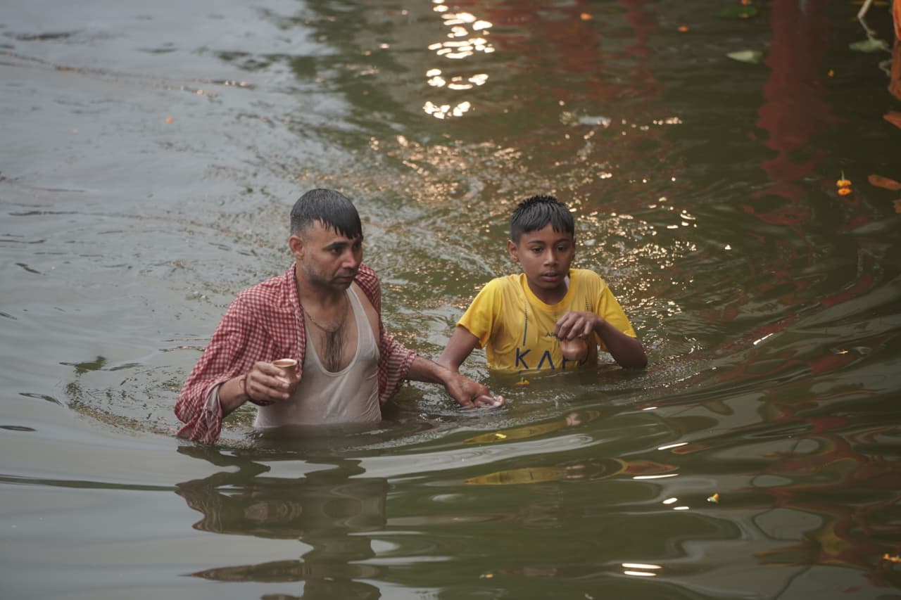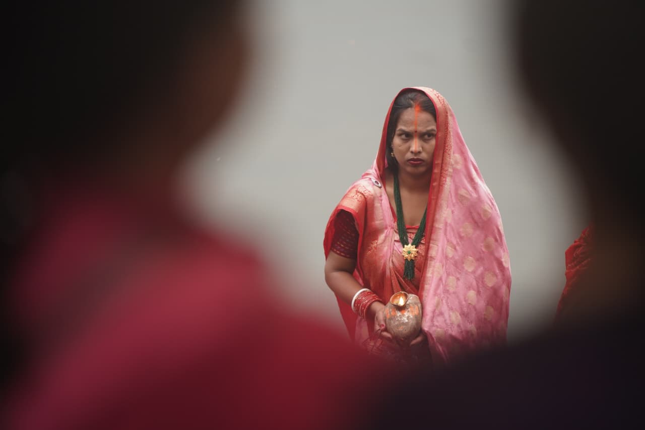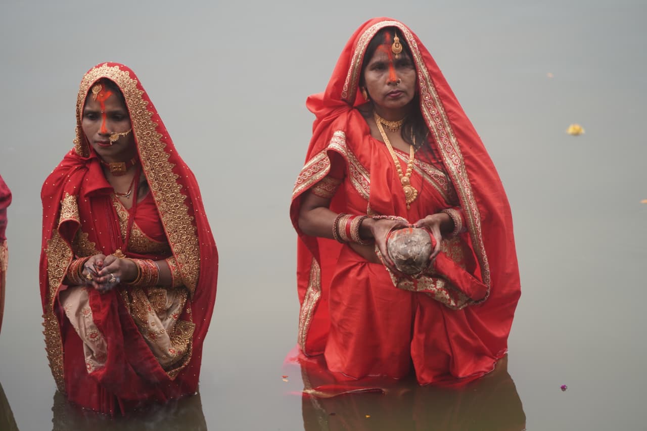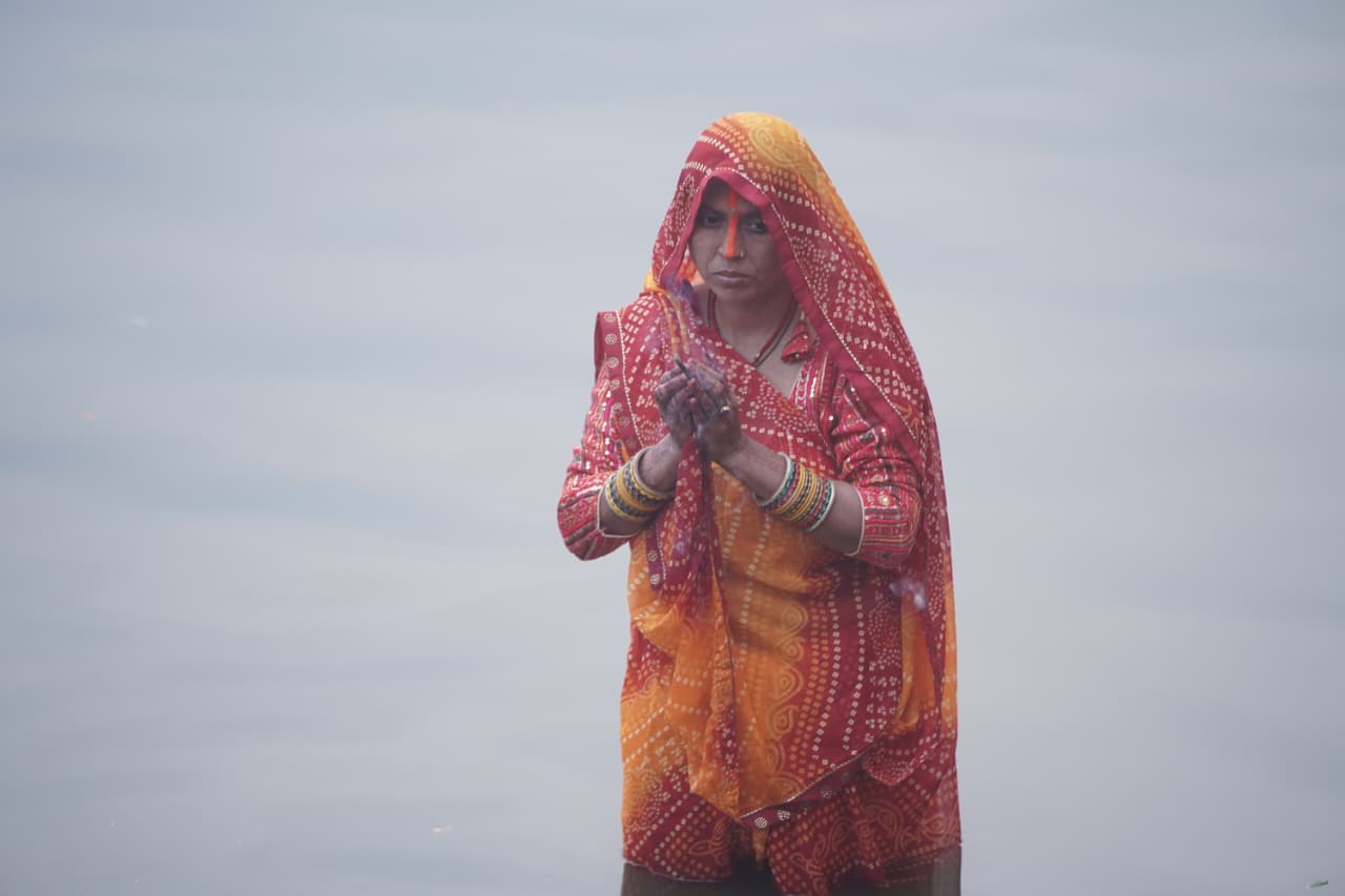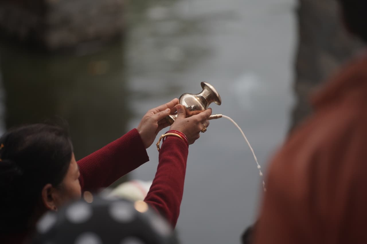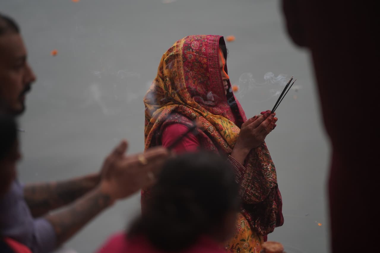 कमलपोखरीमा उदाउँदो सूर्यलाई अर्घ दिँदै (फोटो फिचर)