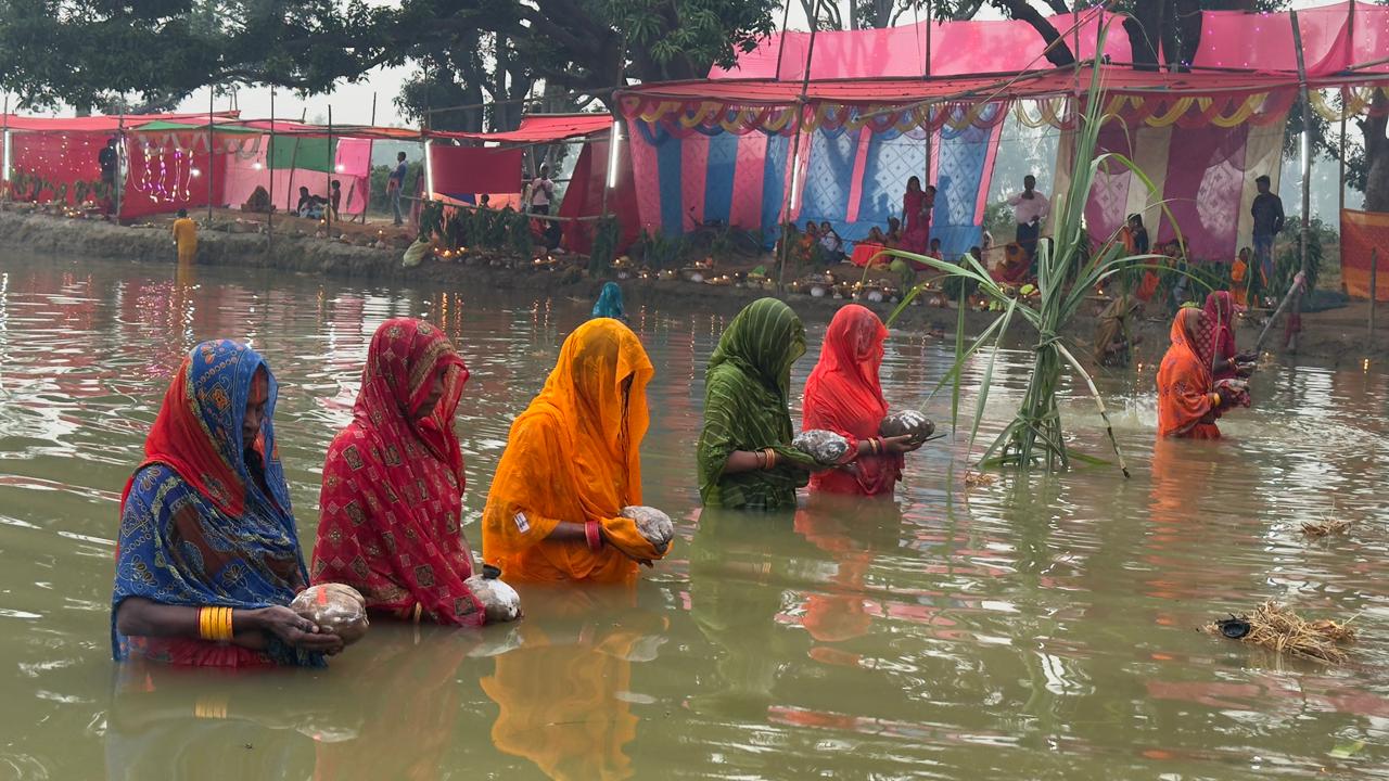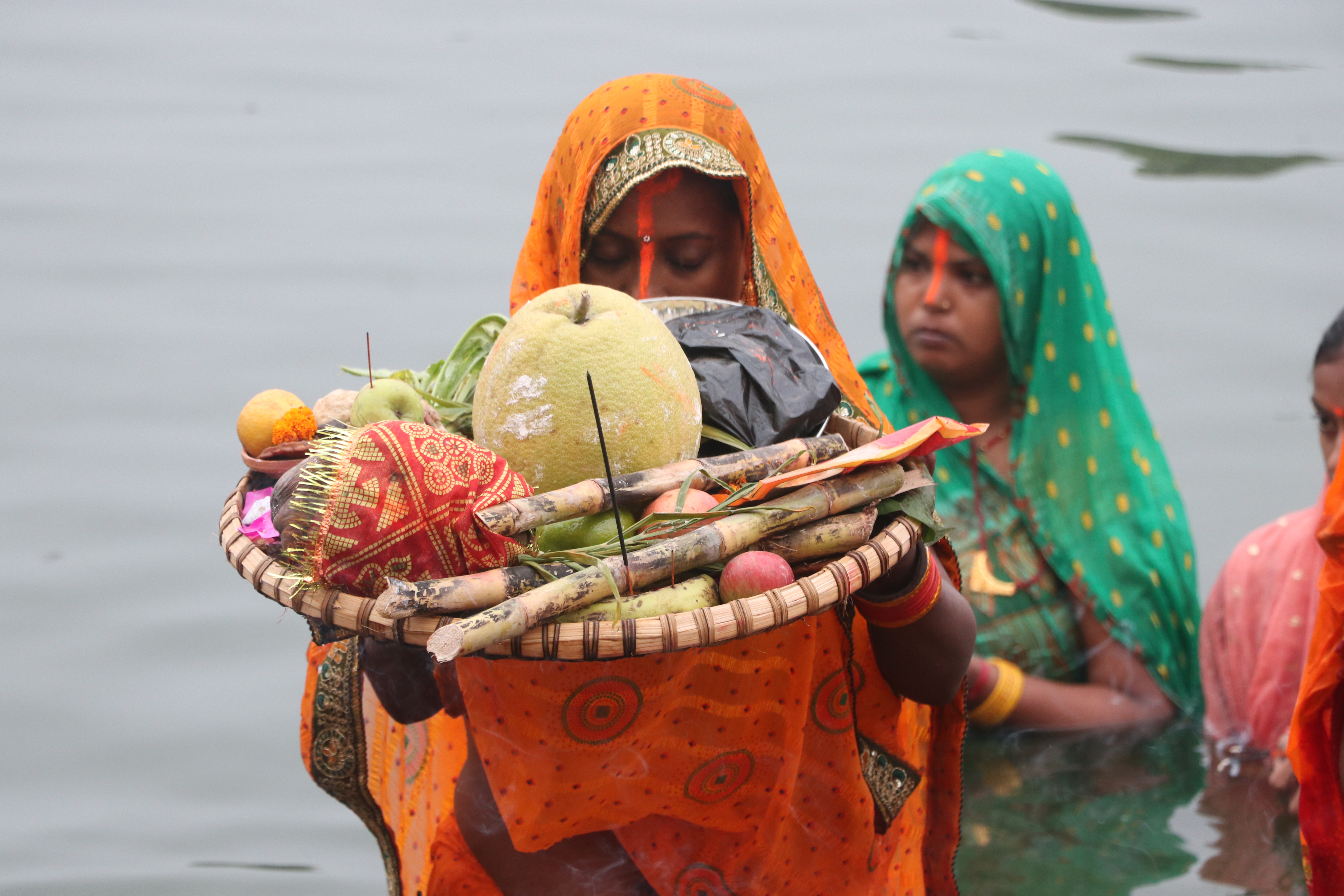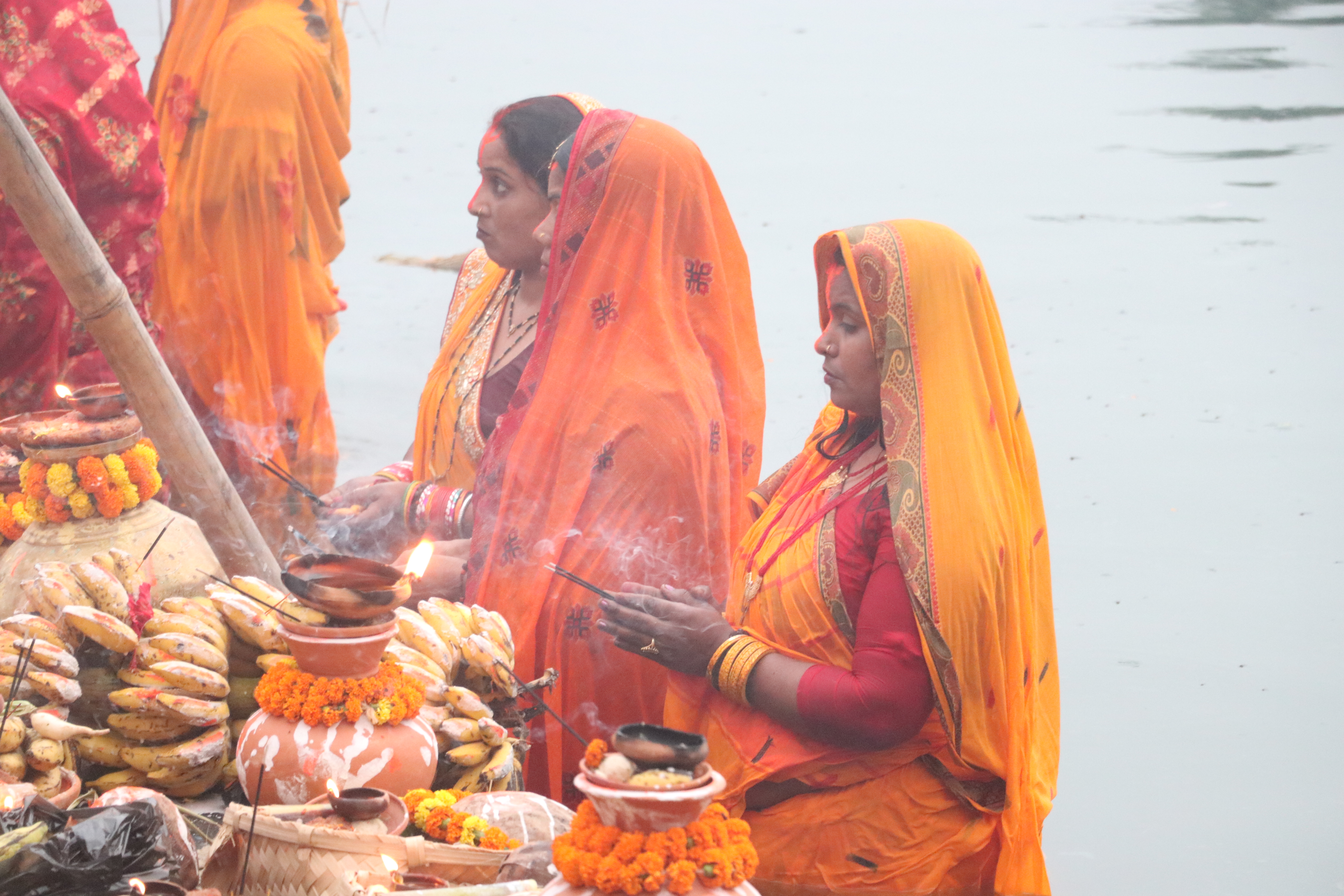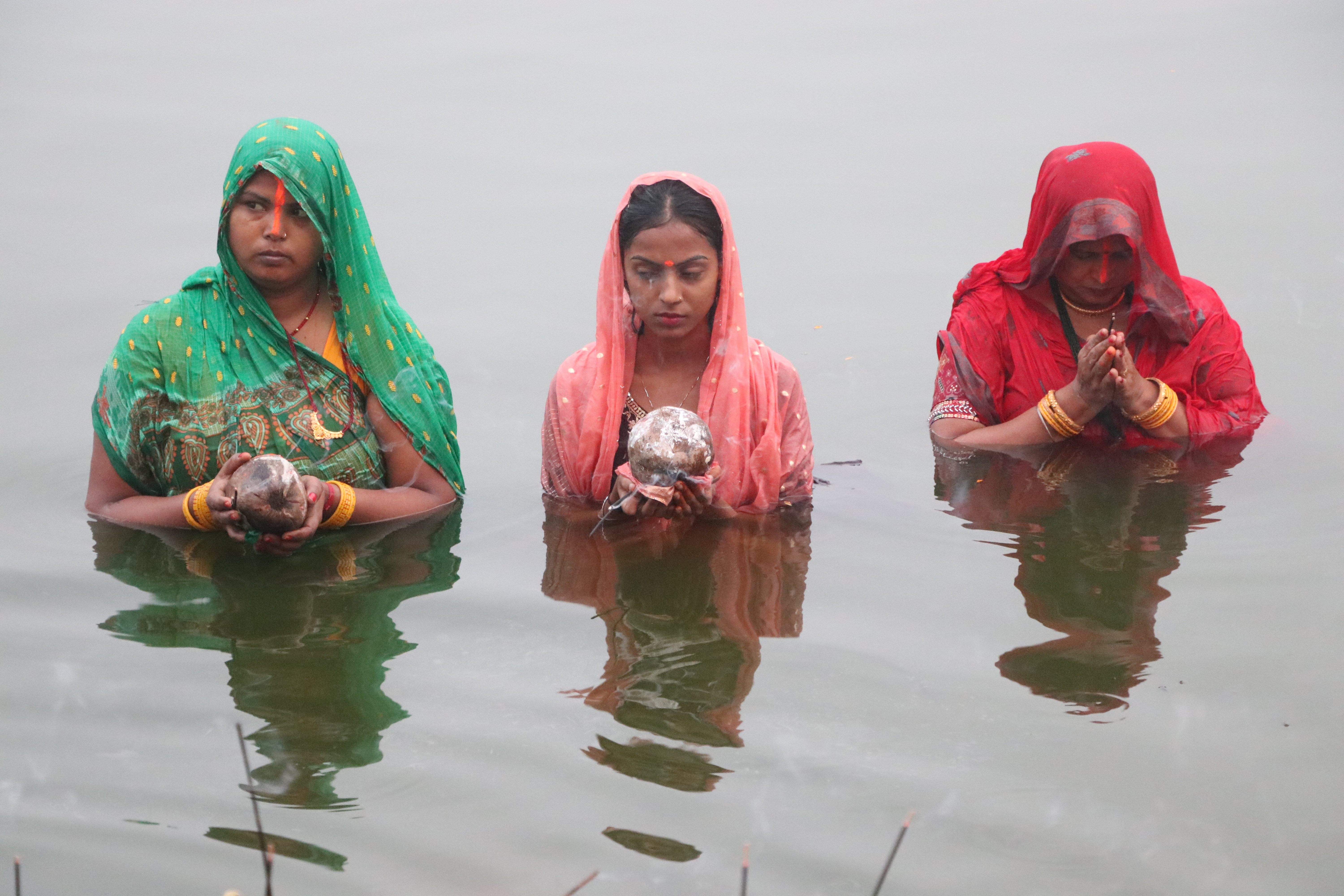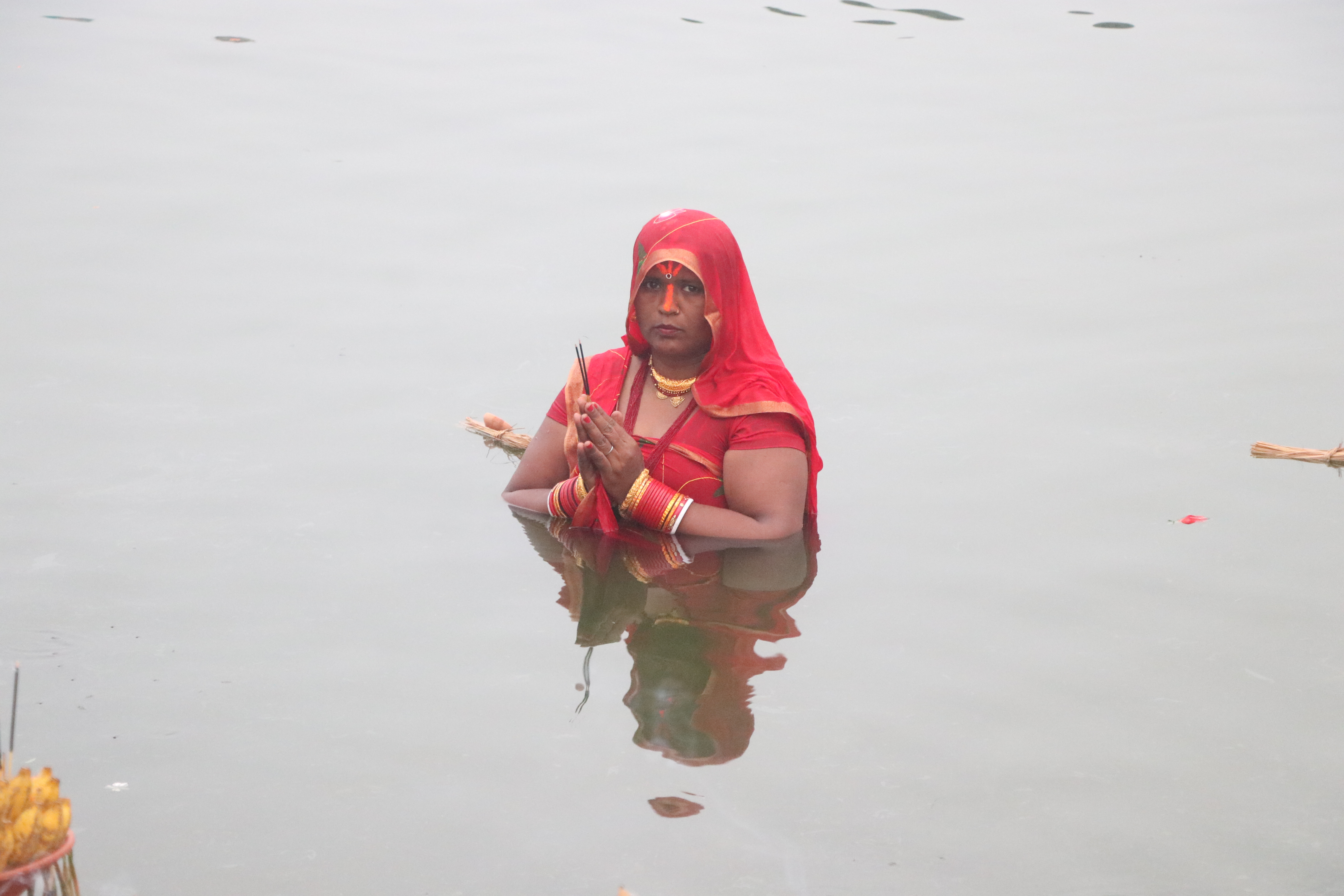 जनकपुरधामसहित धनुषाका विभिन्न पोखरीमा उदाउँदो सूर्यलाई अर्घ दिँदै (तस्विरहरु)