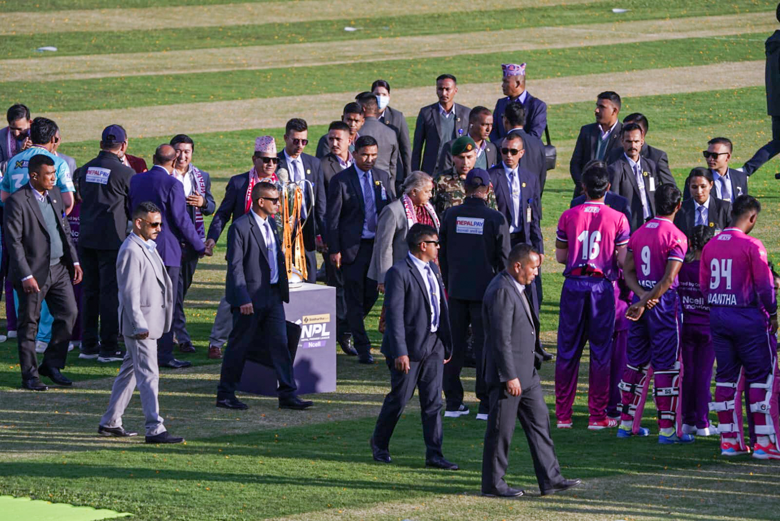 सोमबार कीर्तिपुरस्थित त्रिवि क्रिकेट मैदानमा खेल उद्घाटनका क्रममा हेलिकोप्टरबाट पुष्पवृष्टि समेत गरियो। उद्घाटन खेलमा जनकपुर बोल्ट्स र काठमाण्डू गोर्खाज प्रतिस्पर्धामा छन्।