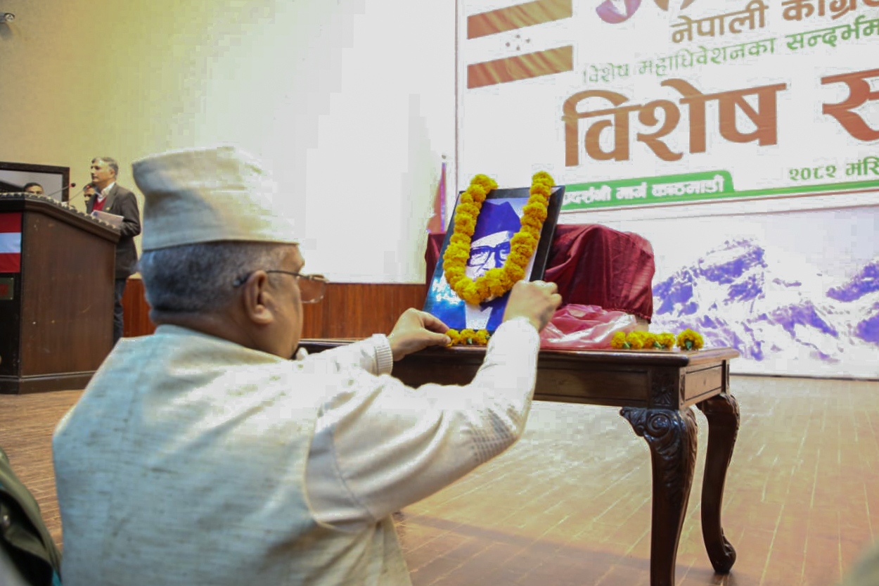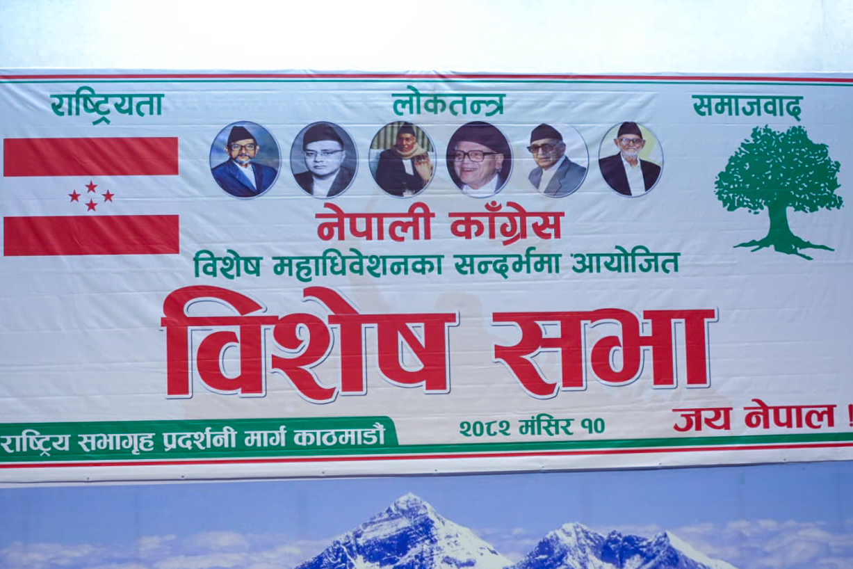 काठमाडौं । नेपाली कांग्रेसमा विशेष महाधिवेशन माग गरेकाहरूले काठमाडौंको राष्ट्रियसभामा विशेष सभा गरेको छ।