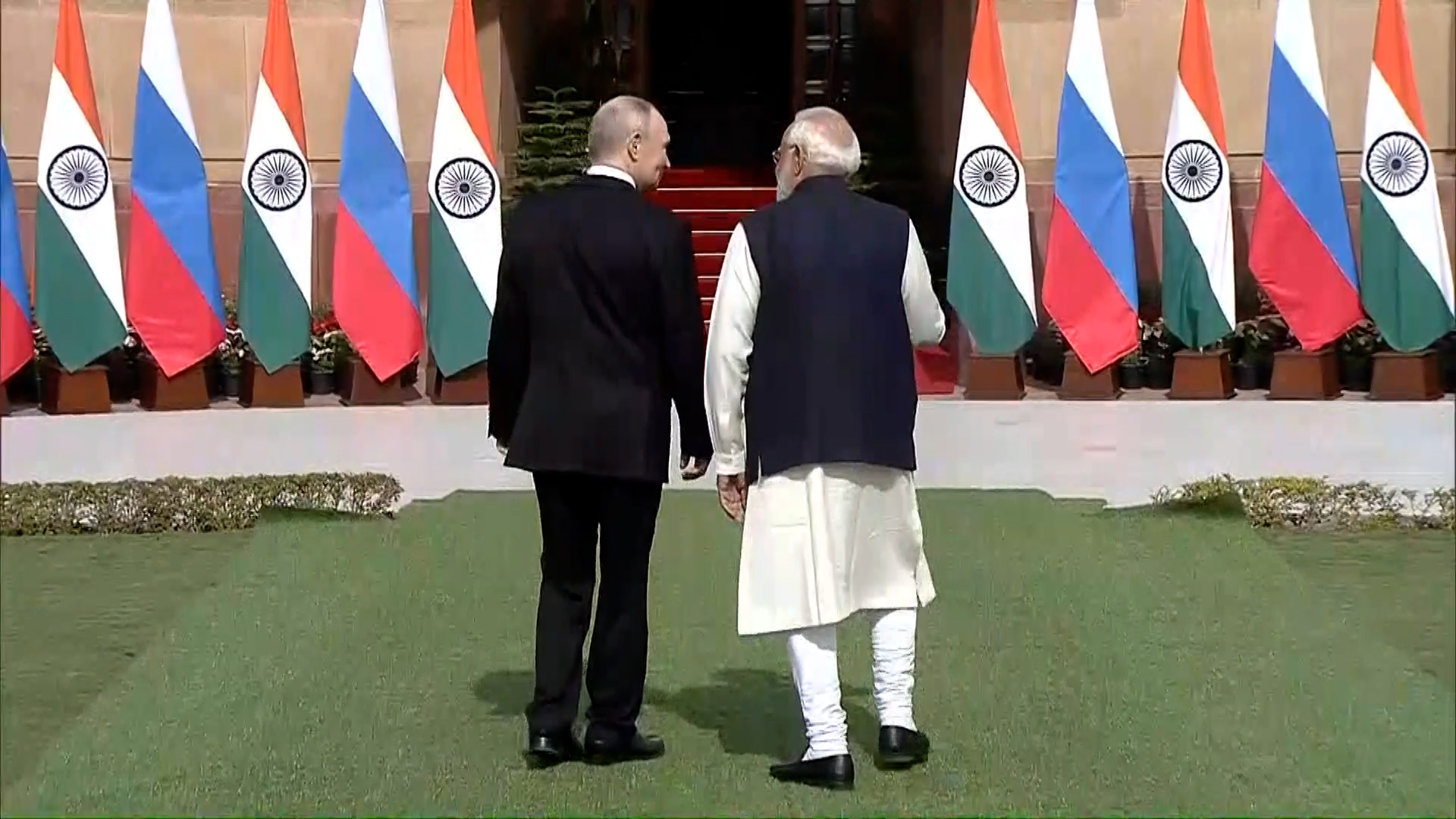 पुटिन विमानस्थलमा उत्रिता मोदी स्वयं एयरपोर्टमा स्वागत गर्न पुगेका थिए। दुवै नेताले एकअर्कालाई अंगालो हालेका थिए। मोदी तथा पुटिन एउटै गाडीमा बसेर एयरपोर्टबाट प्रधानमन्त्री निवास पुगेका थिए।