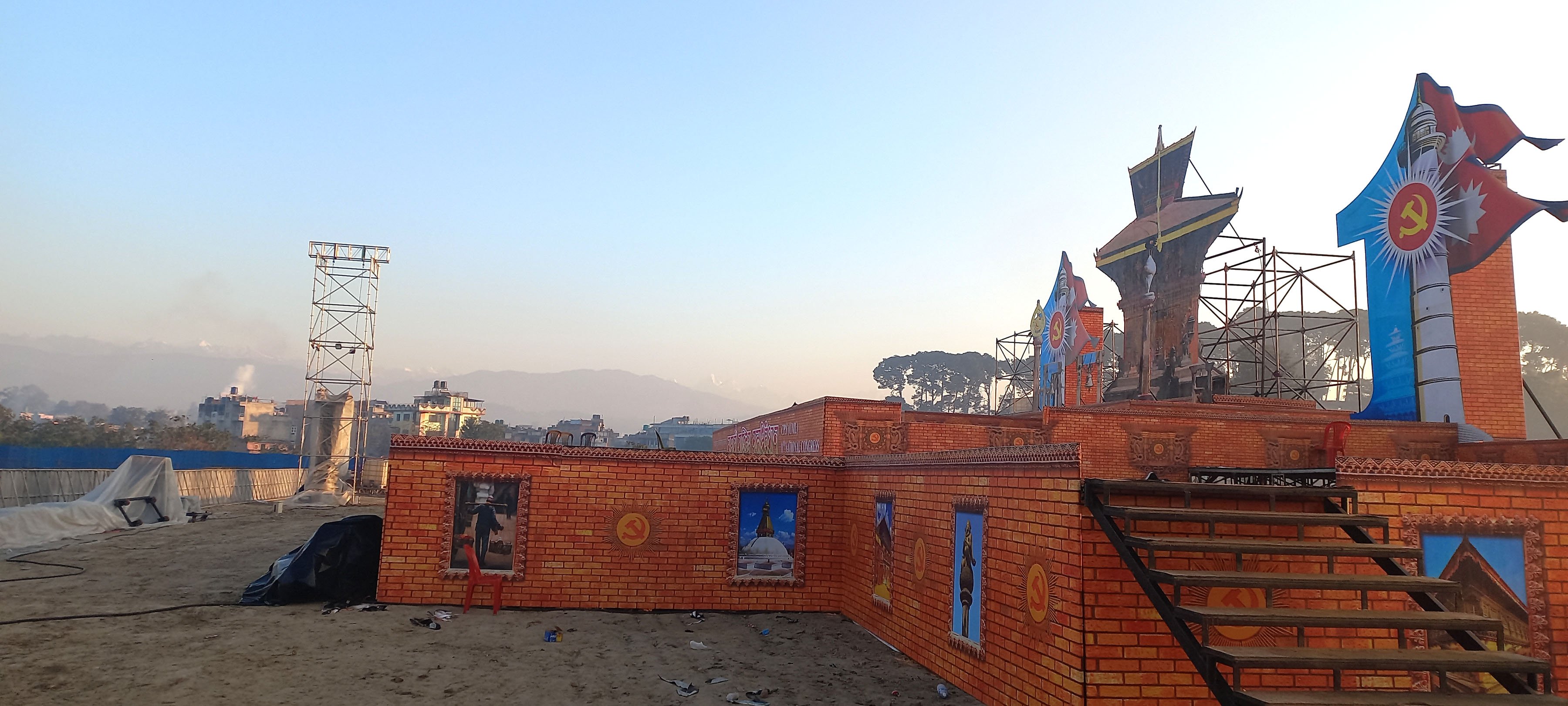 एमाले महाधिवेशन उद्घाटनस्थलमा निर्माणाधीन मञ्च (हेर्नुहोस् तस्बिर)