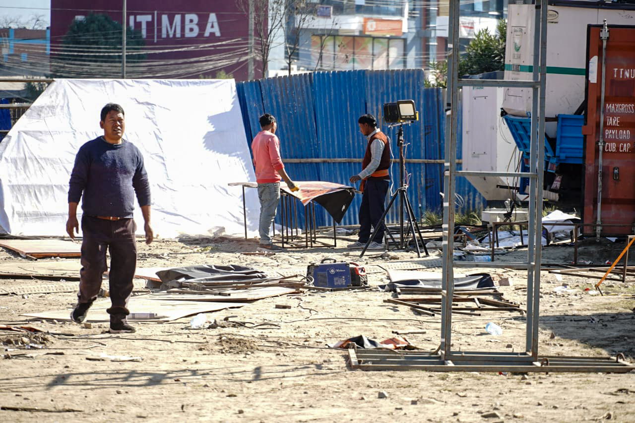 काठमाडाैं। नेपाल कम्युनिष्ट पार्टी (एमाले)को ११औँ महाधिवेशनको उद्घाटनस्थल भक्तपुरको सल्लाघारीमा अस्थायी संरचना निर्माण काम तीव्र गतिमा भइरहेको छ । भोली (शनिबार) उद्घाटन हुने महाधिवेशनका लागि मञ्च निर्माण, शौचालय लगायतका आवश्यक अस्थायी संरचनाहरु निर्माण भईरहेको छ ।