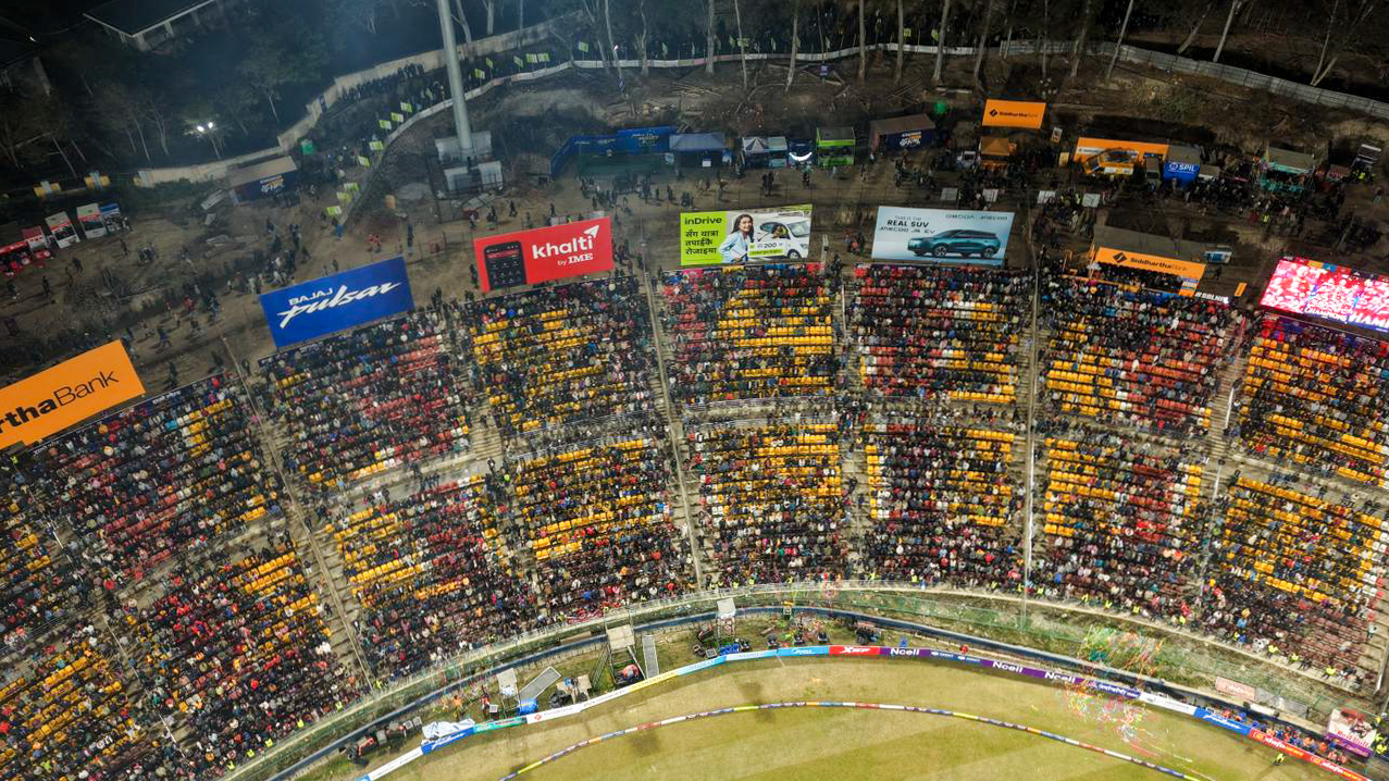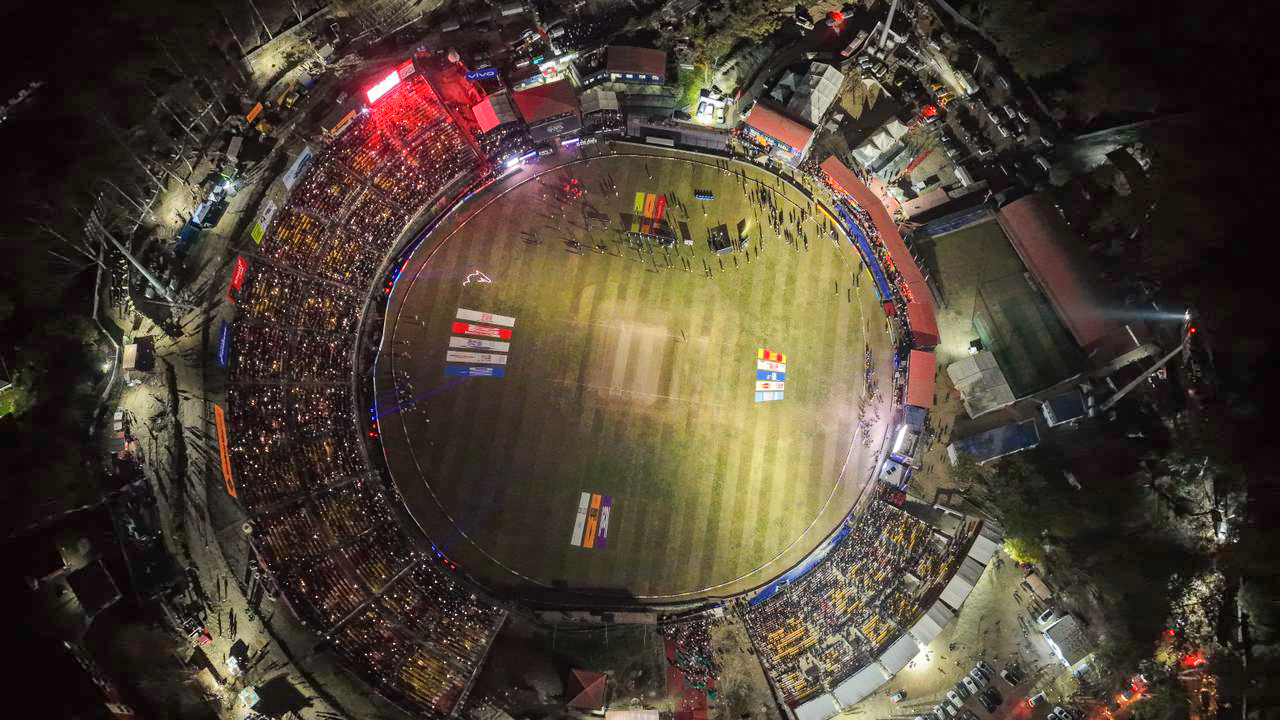 ड्रोनमार्फत खिचिएका तस्बिरहरूले भरिभराउ रंगशाला, खेलाडीहरूको उत्साह र दर्शकहरूको जोशिलो माहोललाई सुन्दर ढंगले कैद गरेका छन्, जसले फाइनल खेलको ऐतिहासिक क्षणलाई अझ विशेष बनाएको छ।
