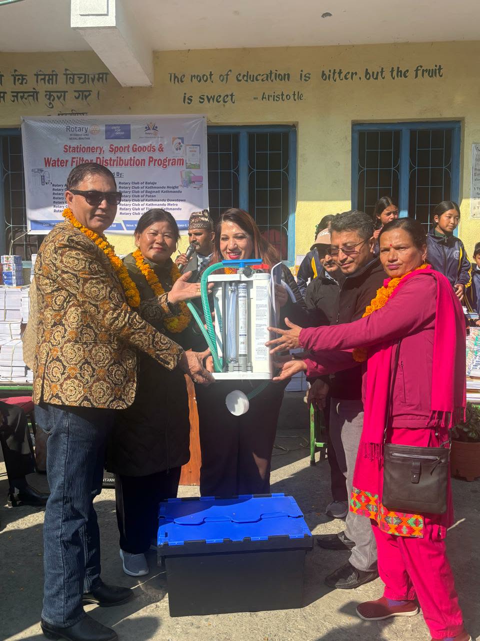 काठमाडौं। “राम्रोको लागि एकजुट हुनुहोस्” भन्ने आदर्शलाई व्यवहारमा उतार्दै विभिन्न रोटरी क्लबहरूको संयुक्त पहलमा तारकेश्वर–५ स्थित नागार्जुन माध्यमिक विद्यालयमा अध्ययनरत विद्यार्थीहरूका लागि शैक्षिक सामग्री, खेलकुद सामग्री तथा सामुदायिक पानी फिल्टर वितरण गरिएको छ।