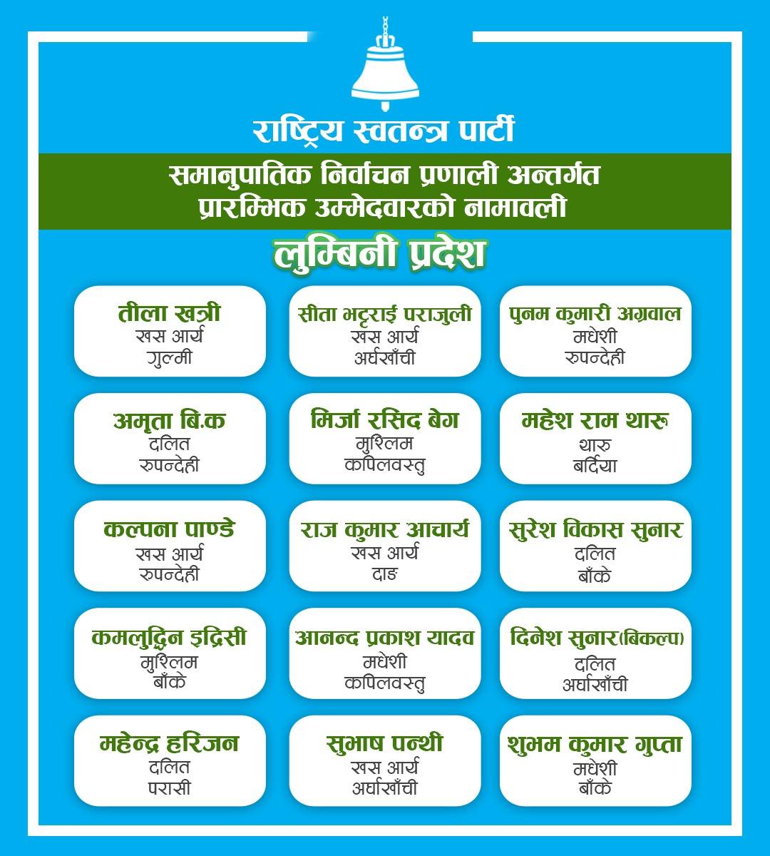 सात वटै प्रदेशबाट ३५२ जनाले उम्मेदवार बन्न आवेदन हालेका थिए। पार्टीले आन्तरिक लोकतन्त्रको अभ्यास भन्दै आवेदन मागेको थियो। समानुपातिक उम्मेदवार बन्न आवेदन दिएका ३५२ जनाको नाम पुस ३ गते सार्वजनिक भएको हो। जसमा सबैभन्दा धेरै बागमती प्रदेशबाट ९४ जना छन् भने कर्णालीबाट २० जना मात्र छन्। यस्तै कोशी प्रदेशबाट ६० जना, मधेशबाट ६१ जना, गण्डकीबाट ४३ जना, लुम्बिनीबाट ४४ जना र सुदूरपश्चिमबाट ३० जनाले आवेदन दिएका छन्।