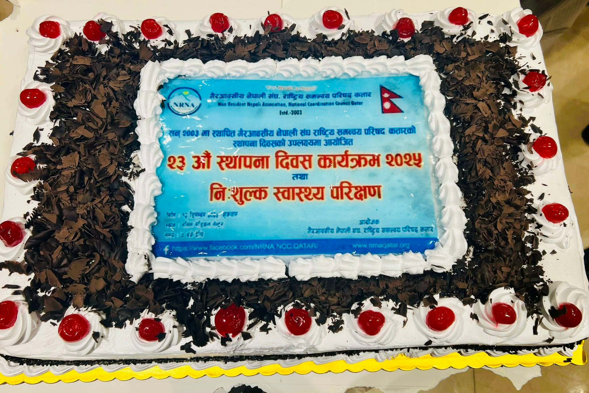 दाेहा। गैरआवासीय नेपाली संघ, राष्ट्रिय समन्वय परिषद् (एनआरएनए ) कतारले २३औं स्थापना दिवस श्रमिकहरुको साथमा केक काटेर मनाएको छ।