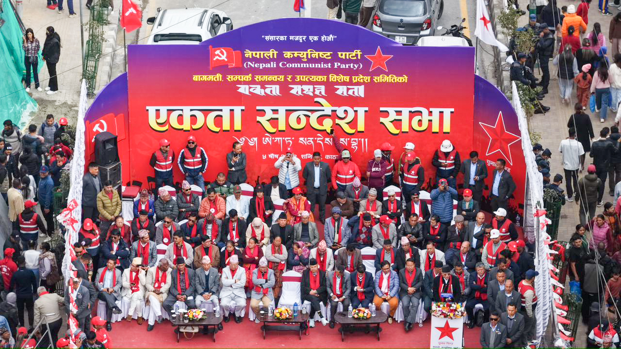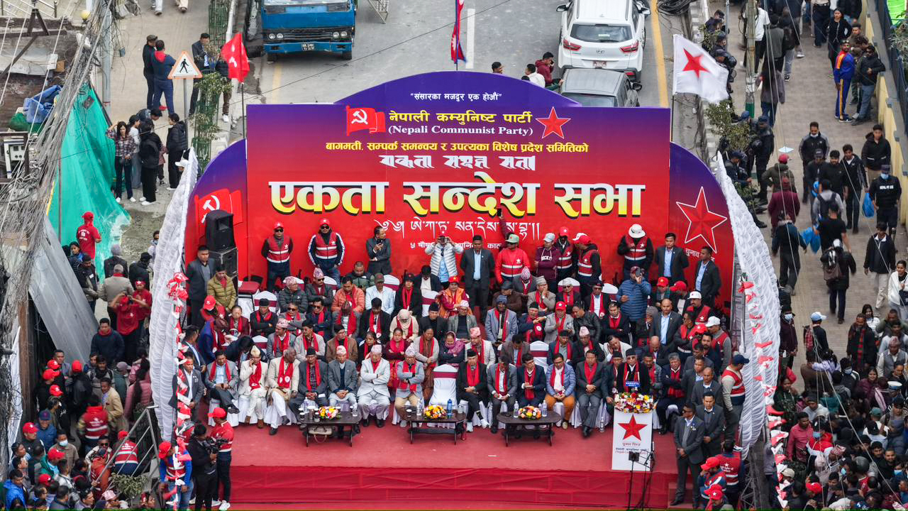 काठमाडौं। नेपाली कम्युनिस्ट पार्टीले काठमाडौंमा शक्ति प्रदर्शन गरेको छ। शनिबार बागमती प्रदेश कमिटीले विभिन्न र्यालीसहितको प्रदर्शनपछि भृकुटीमण्डपमा एकता सन्देश सभा आयोजना गरेको हो।