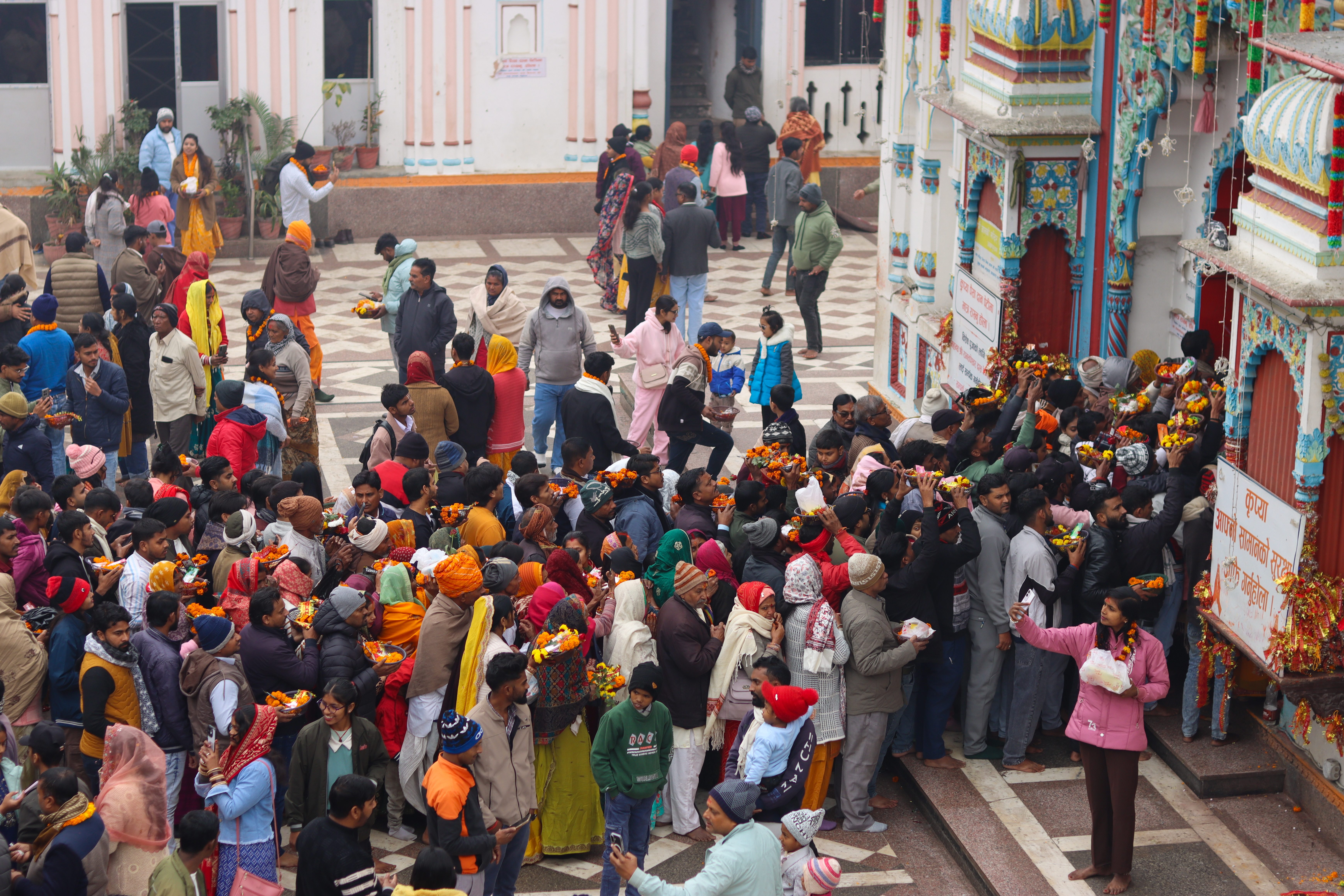 अंग्रेजी वर्ष २०२६ को पहिलो दिन धनुषामा पर्यटकहरुको घुँइचो लागेको छ । खासगरी भारतका दिल्ली, मुम्बई, राजस्थानलगायतका क्षेत्रबाट हजारौंको संख्यामा भारतीय पर्यटकहरु जनकपुरधाम घुम्न आईपुगेका छन् ।
