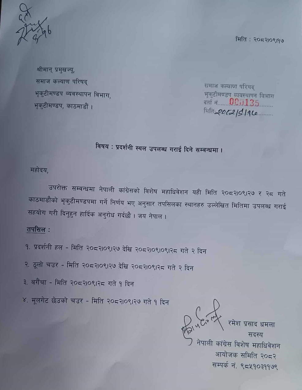 कांग्रेसको विशेष महाधिवेशन भन्दै बुक गरियो भृकुटीमण्डपको हल
