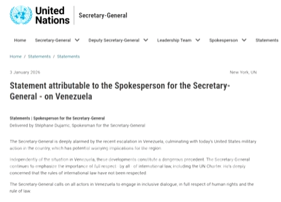 संयुक्त राष्ट्रसंघका महासचिव एन्टोनियो गुटेरेसले यस घटनाप्रति गहिरो चिन्ता व्यक्त गर्दै अमेरिकी सैन्य हस्तक्षेपले दूरगामी क्षेत्रीय परिणामसहित खतरनाक उदाहरण स्थापित गरेको चेतावनी दिएका छन्।