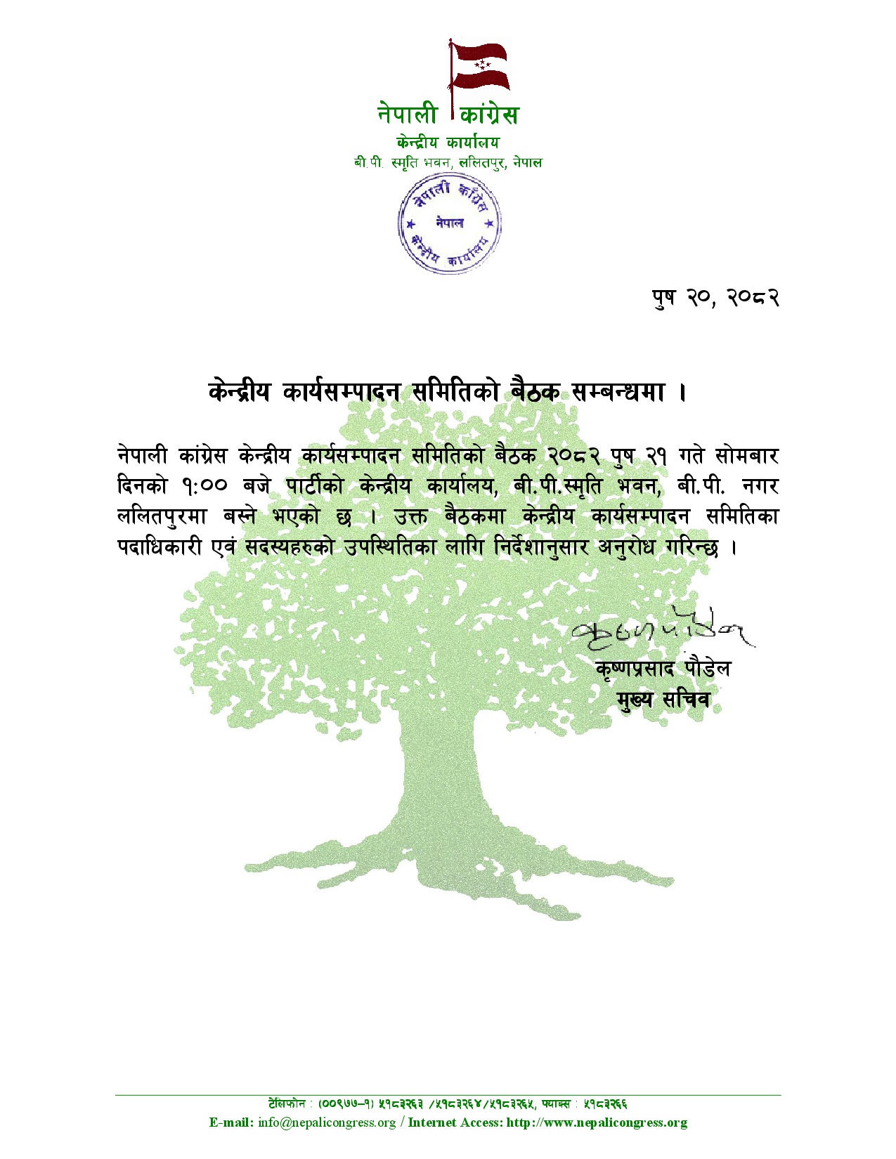 बैठकमा केन्द्रीय कार्यसम्पादन समितिका पदाधिकारी एवम् सदस्यहरूलाई उपस्थित हुन आग्रह गरिएको छ।