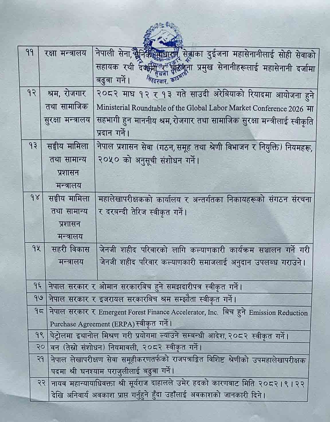 मन्त्रिपरिषद् बैठकका ३५ निर्णय सार्वजनिक