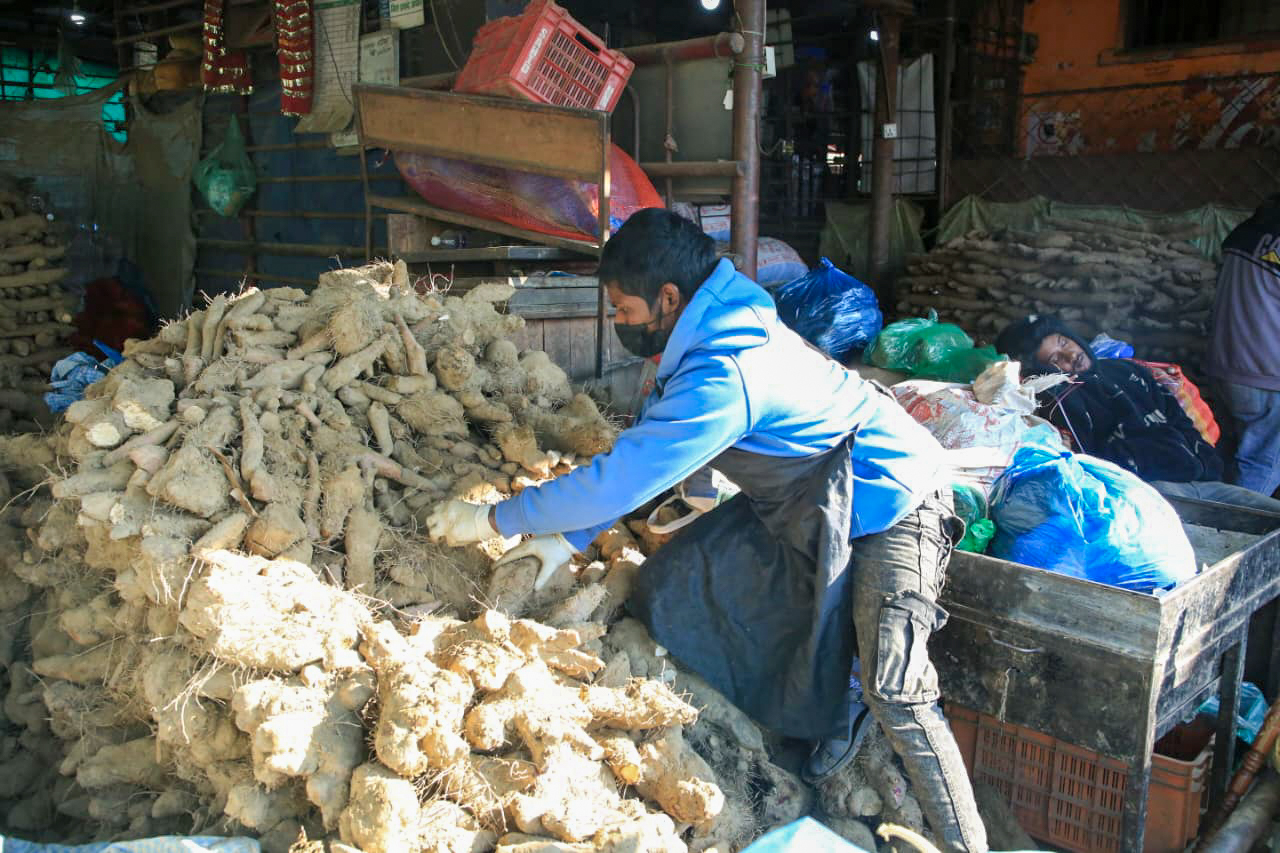 काठमाडाैं। माघेसंक्रान्ति नजिकिँदै जाँदा उपत्यकाको प्रमुख तरकारी बजार कालीमाटी मा तरुल तथा कन्दमूल किन्ने उपभोक्ताको चहलपहल बढेको छ। पर्वलाई लक्षित गर्दै विभिन्न किसिमका तरुलहरू कालीमाटी तरकारी बजारमा किनबेच भइरहेका छन्।