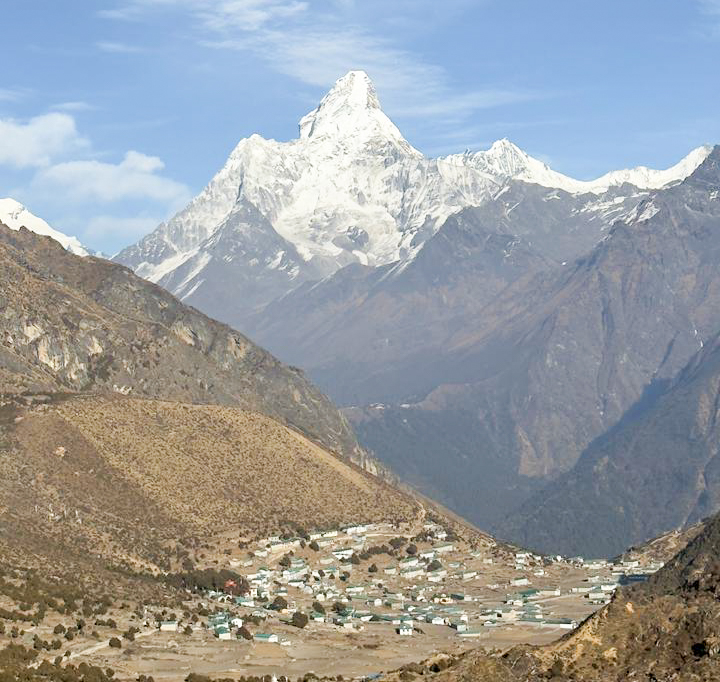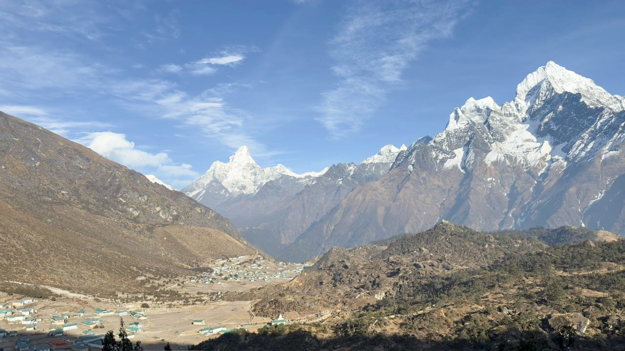 सोलुखुम्बुको स्यङ्बोछेबाट देखिने हिमाल र खुम्जुङ गाउँ (फोटोफिचर)