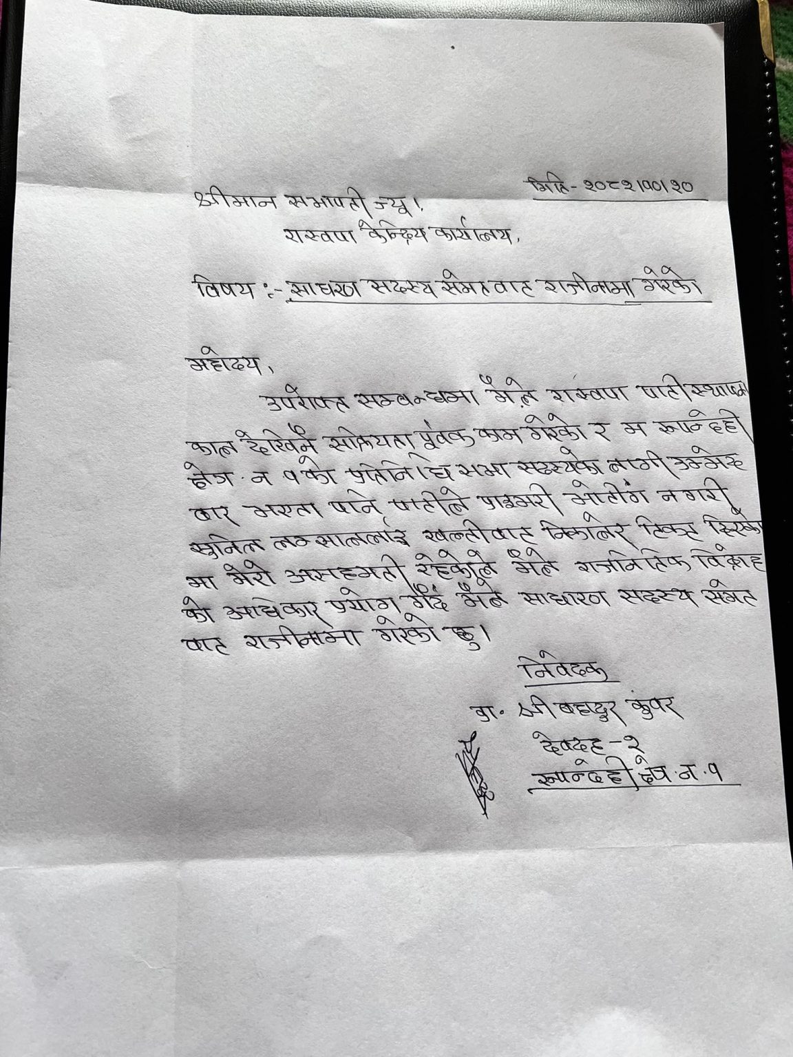 उम्मेदवार आकांक्षीबाट २५ हजार रुपैयाँ लिएर प्राइमरी इलेक्सन नै नगरेको, राष्ट्रियताप्रति पार्टीको सोच र दृष्टिकोण स्पष्ट नभएको भन्दै उनले पार्टी परित्याग गरेको बताएका छन्।