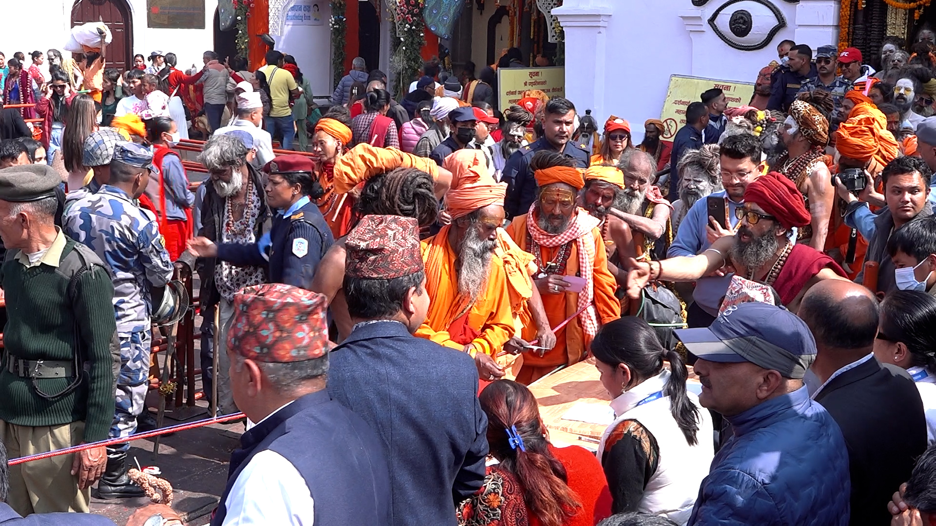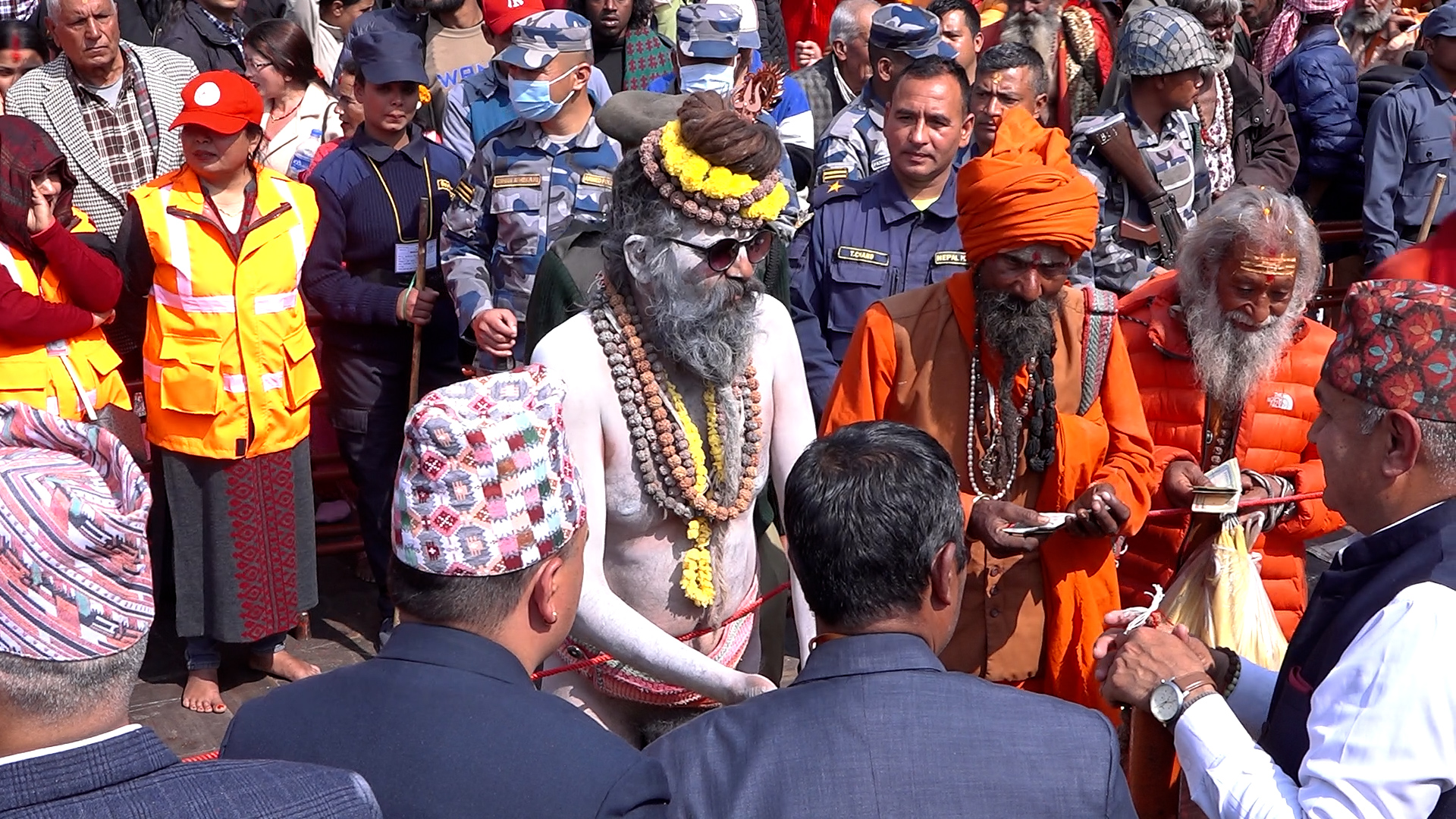 काठमाडाैं। महाशिवरात्रिको उपलक्ष्यमा पशुपतिनाथको दर्शनका लागि आएका नागा बाबालगायत साधुसन्तलाई दान दक्षिणासहित बिदाइ गरिएको छ। साधुसन्तलाई गुठी संस्थान र पशुपति क्षेत्र विकास कोषले दान दक्षिणासहित बिदाइ गरेको हो।