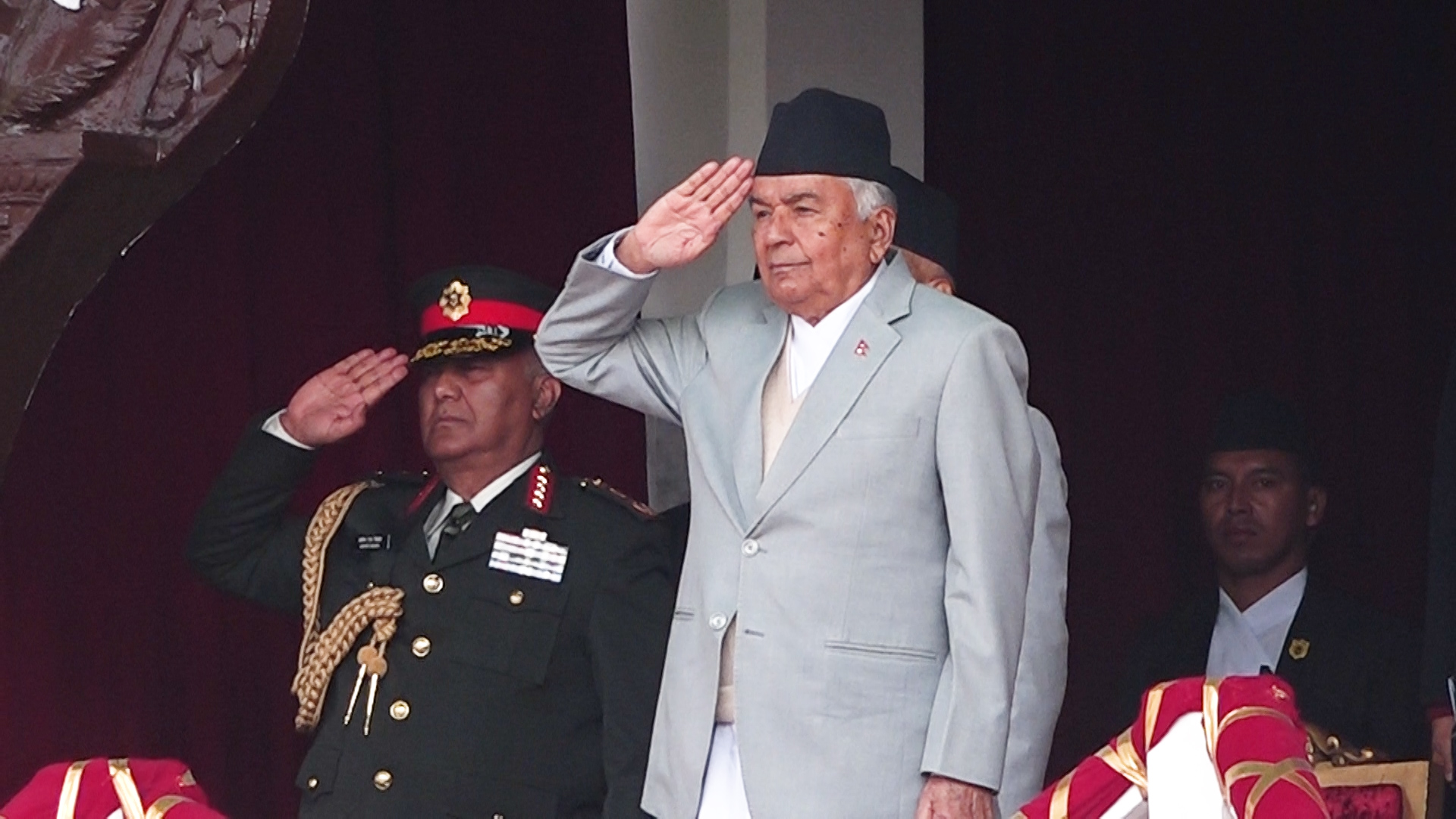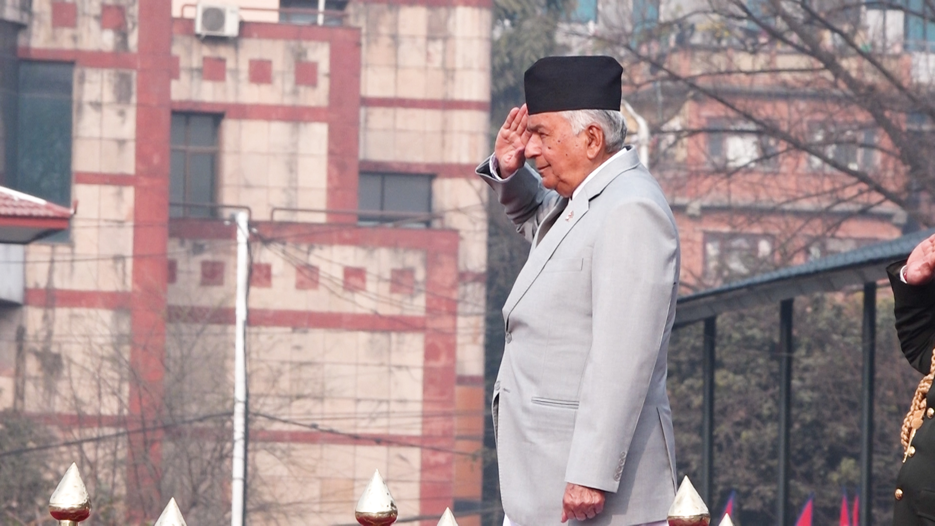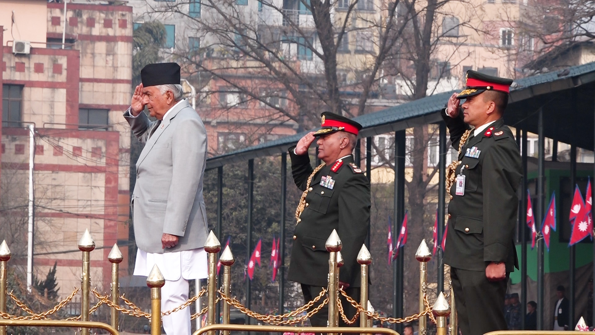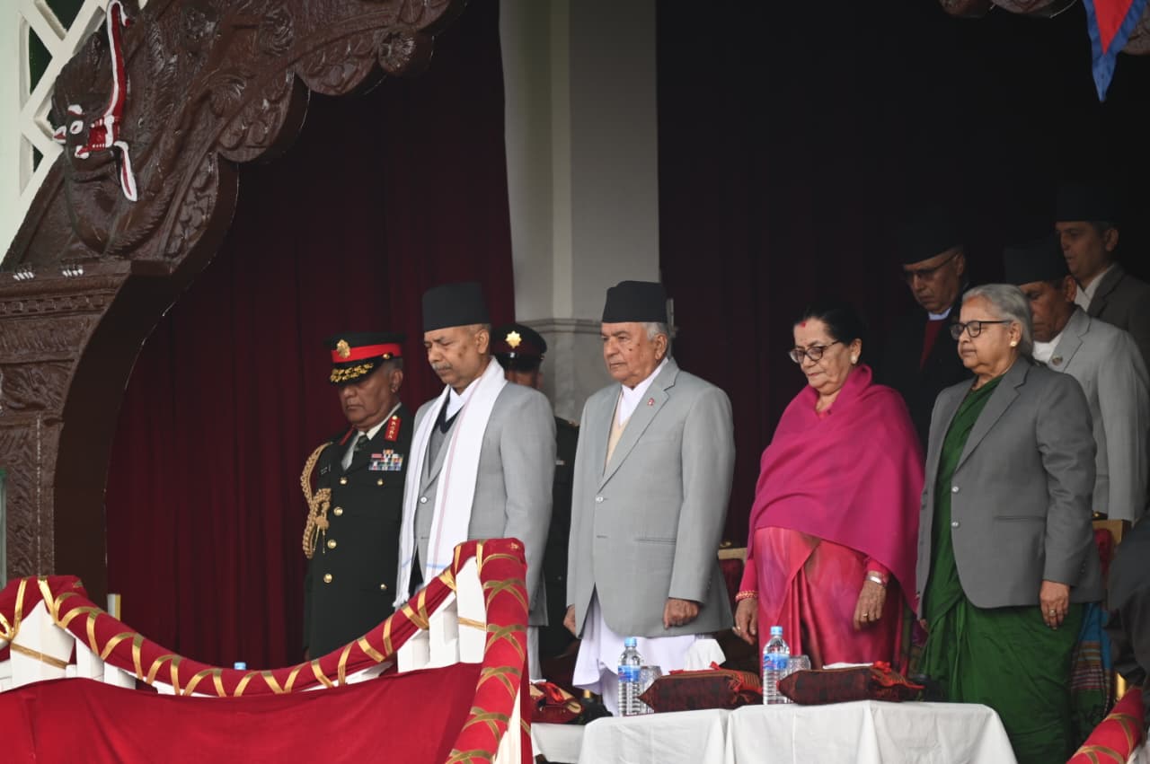राष्ट्रपति पौडेल प्रथम महिला सबिता पौडेलसहित राष्ट्रिय प्रजातन्त्र दिवस मूल समारोह समितिद्धारा आयोजित सो समारोहमा सरिक भएका हुन्। सो अवसरमा नेपाली सेनाले उनको सम्मानमा सलामी अर्पण गरेको थियो । सो कार्यक्रममा झाकी, मार्च पास, नृत्य र साडगीतीक धुन प्रस्तुत गरिएको थियो।
