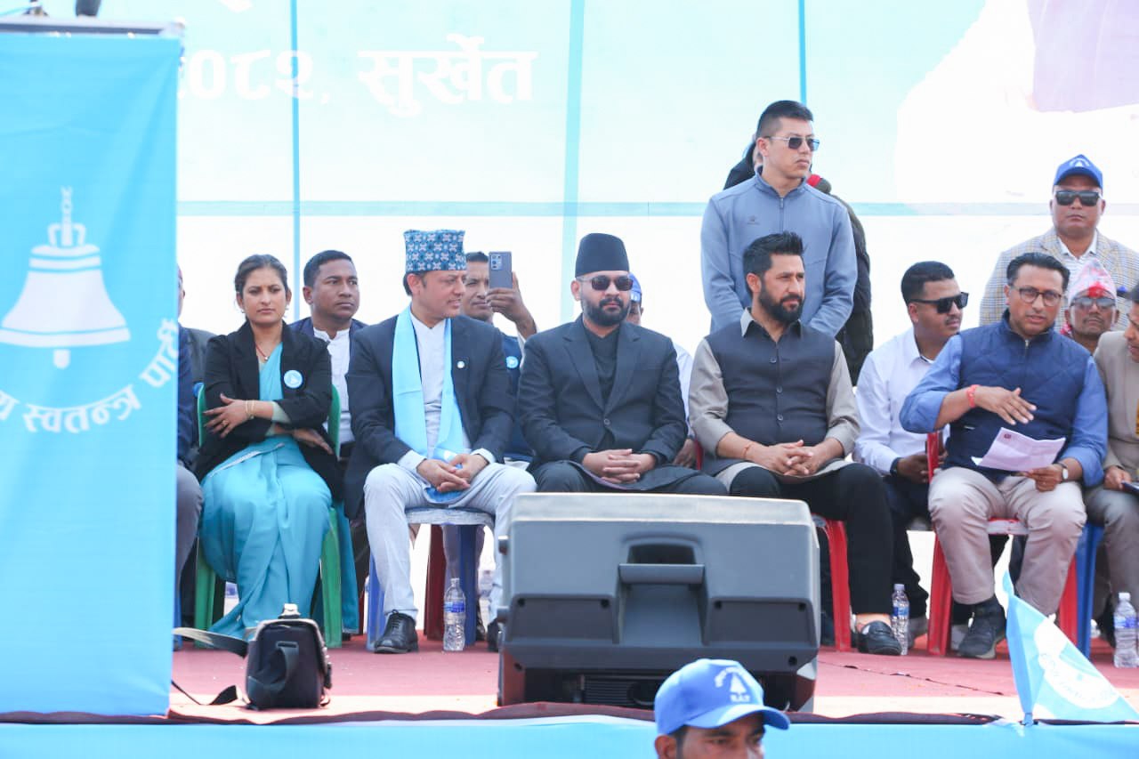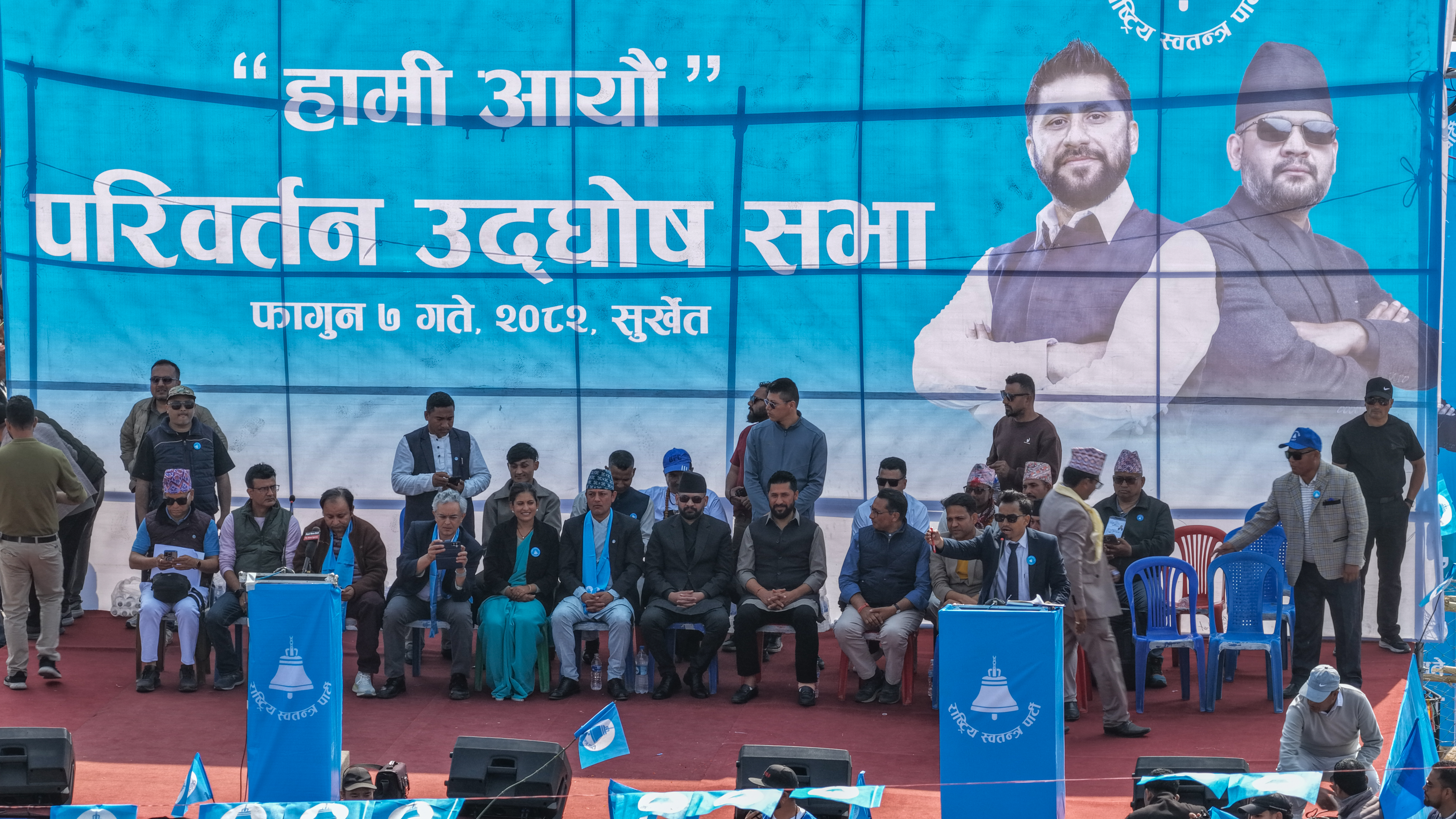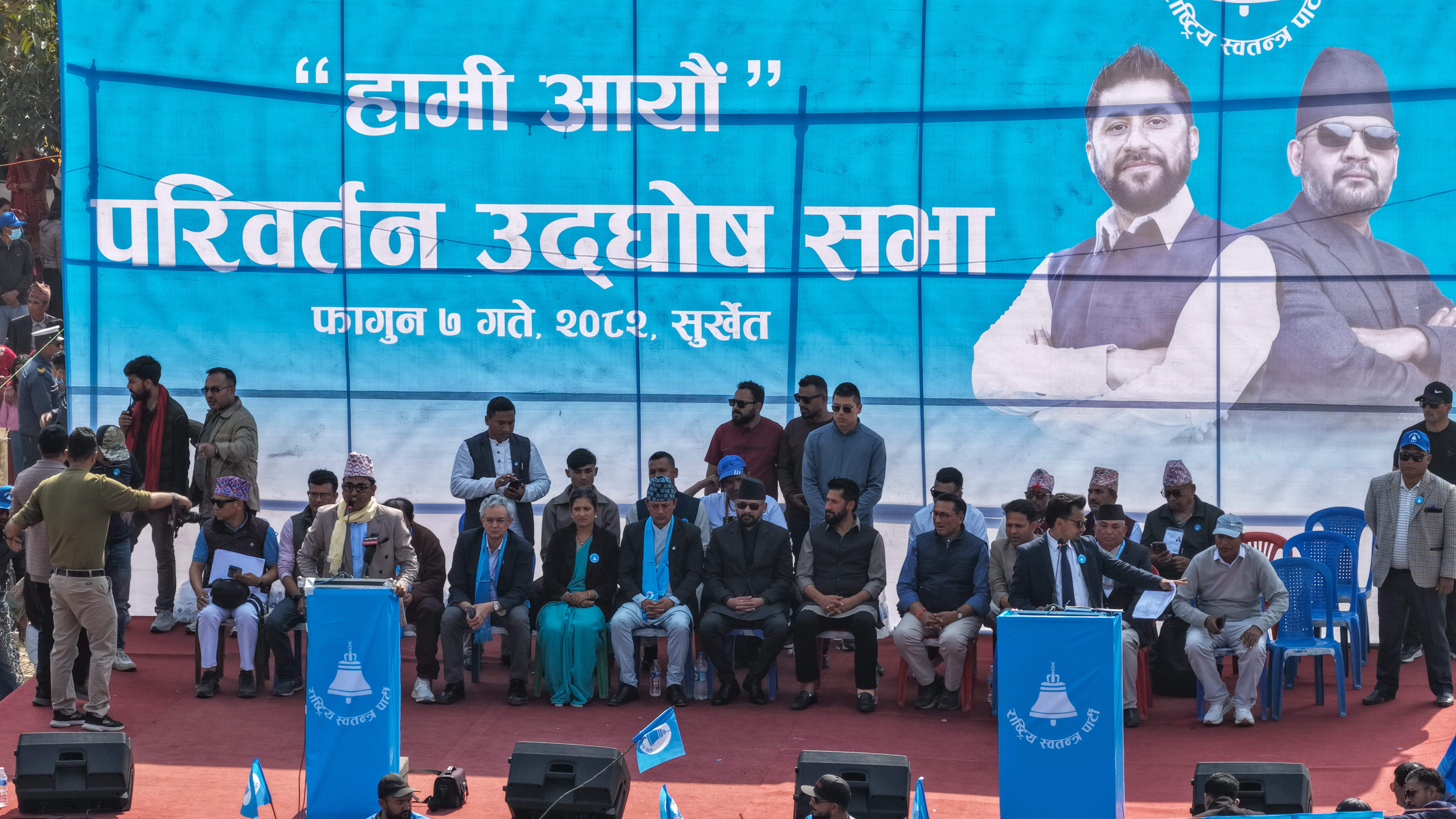 सुर्खेत । राष्ट्रिय स्वतन्त्र पार्टी (रास्वपा)ले आज सुर्खेतमा चुनावी प्रचारप्रसारका क्रममा ‘हामी आयौँ’ भन्ने नारासहित परिवर्तन उद्घोष सभा आयोजना गरेको छ।