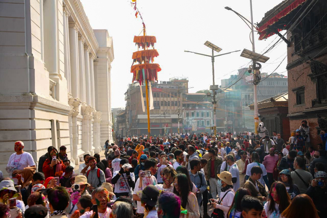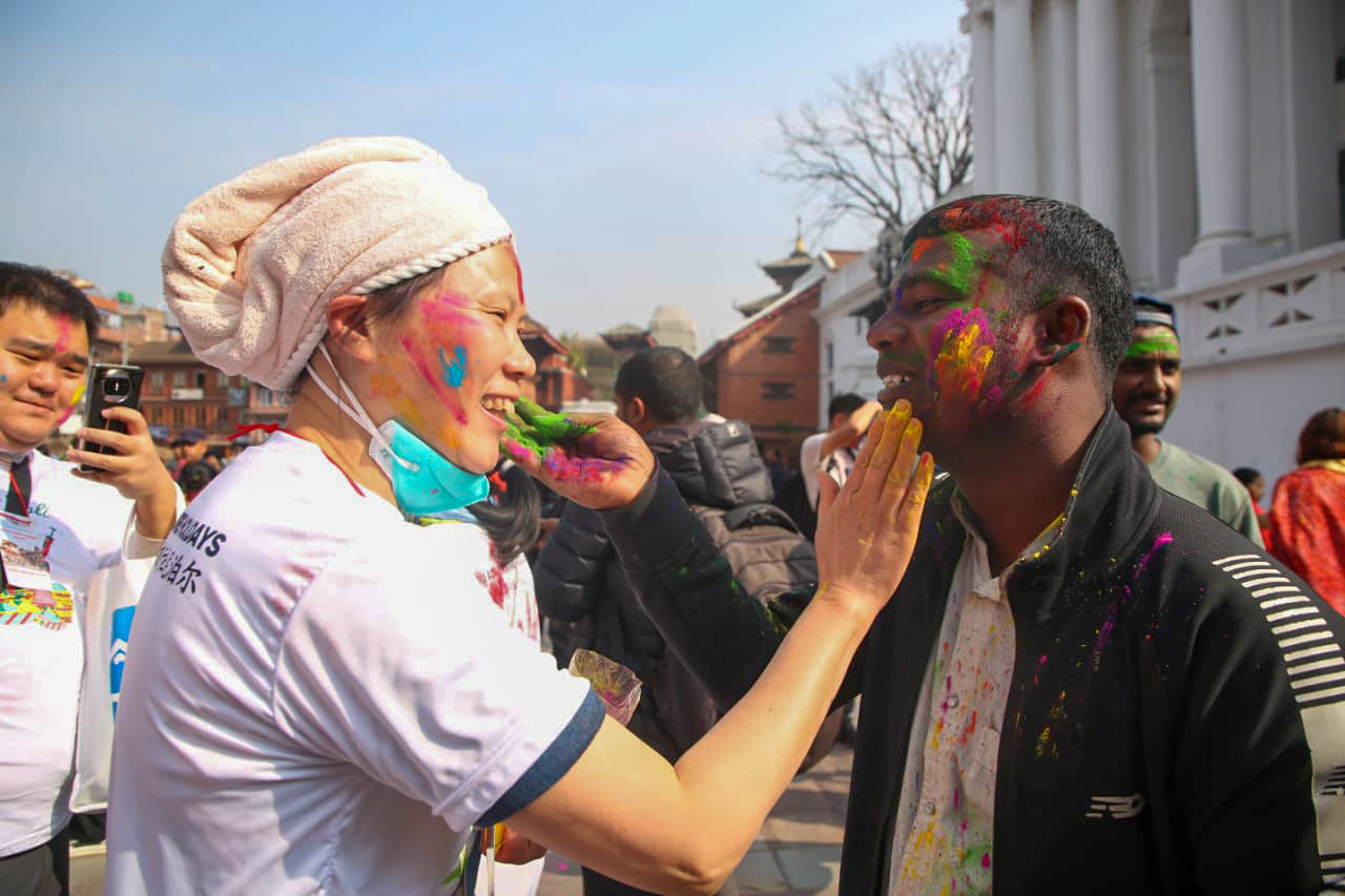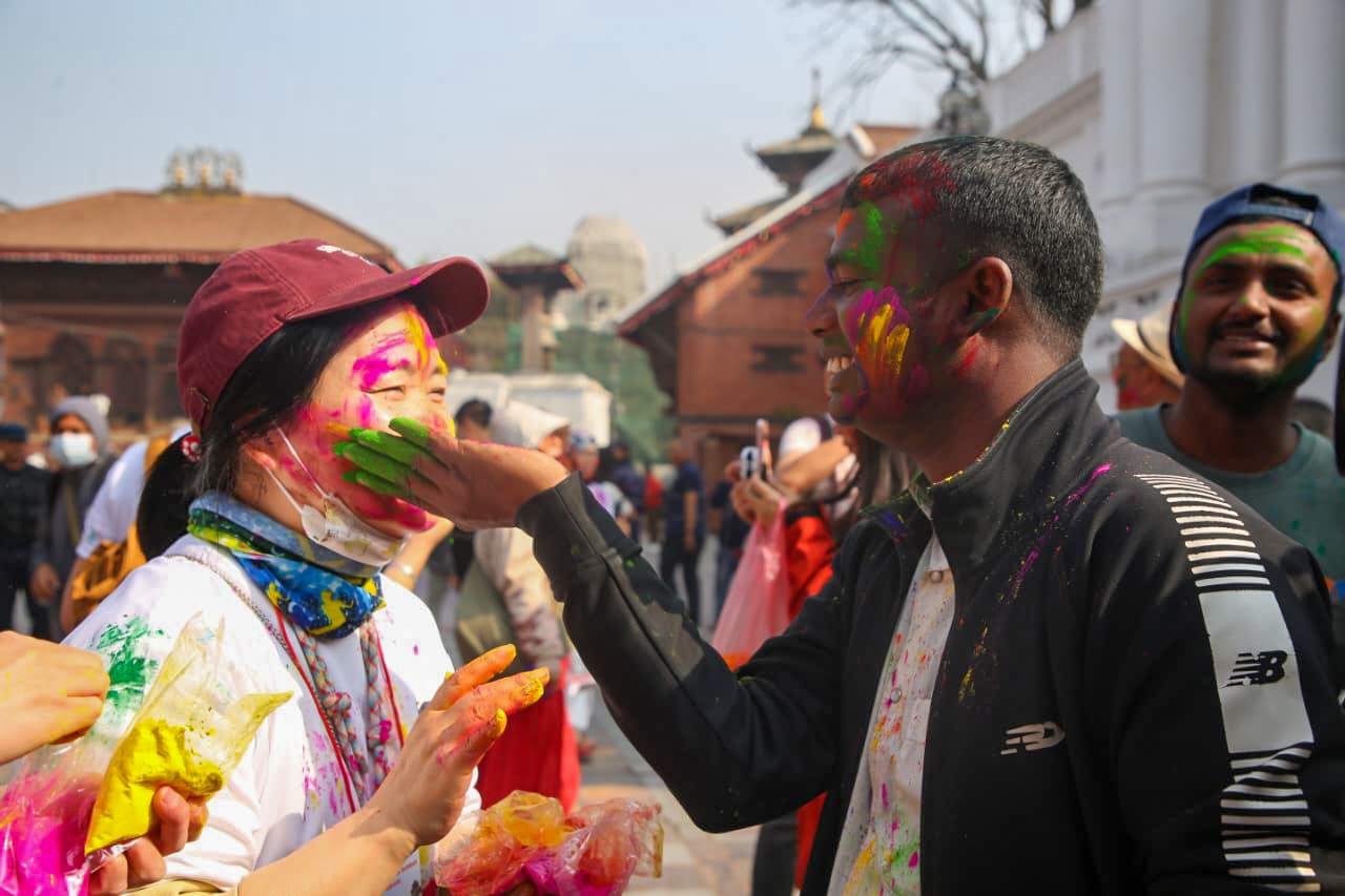 नेपाल घुम्न आएका विदेशी नागरिक पनि होलीको खुसीमा सँगसँगै रमेका छ । भिडभाड, नाचगान र रंगले वसन्तपुर रंगिएको छ।
