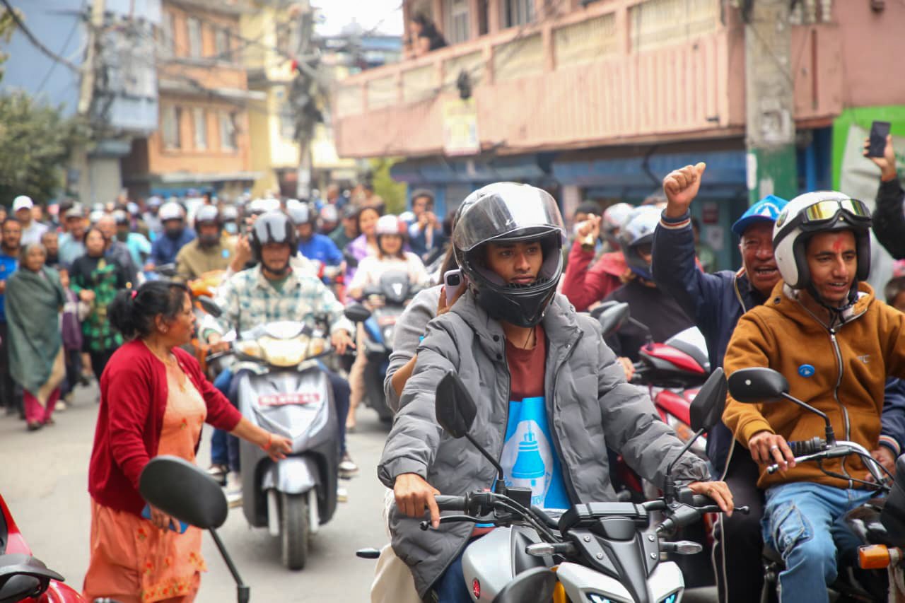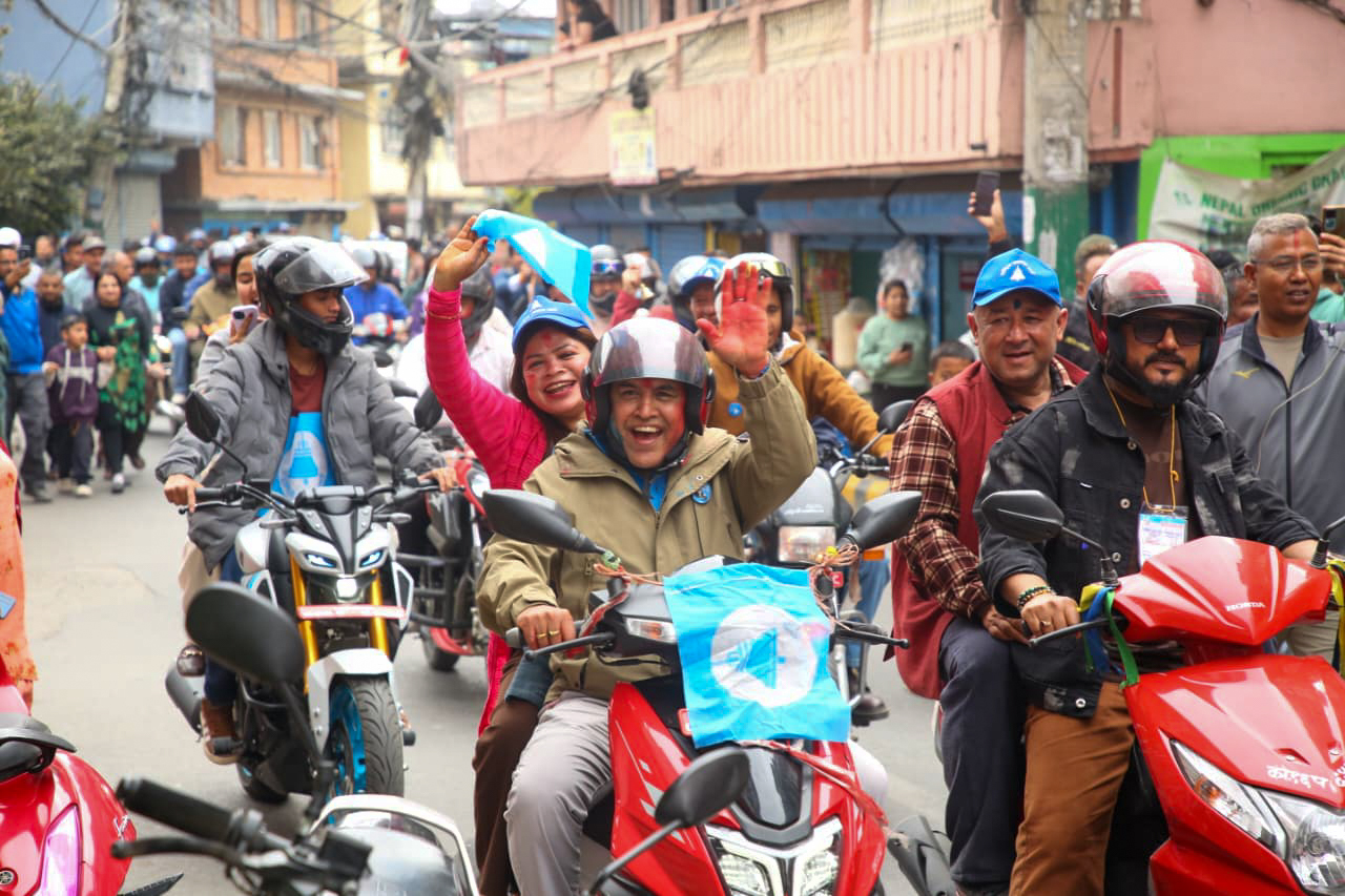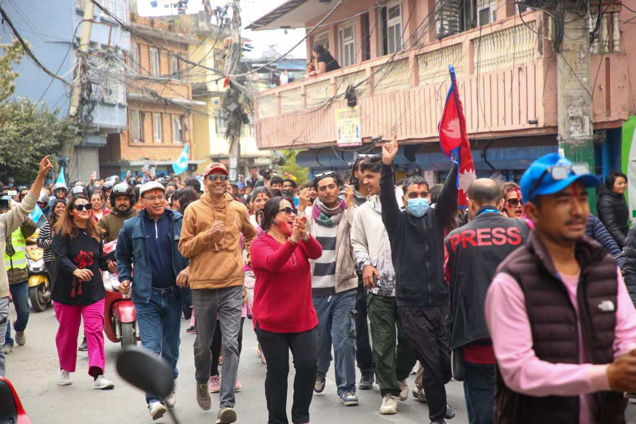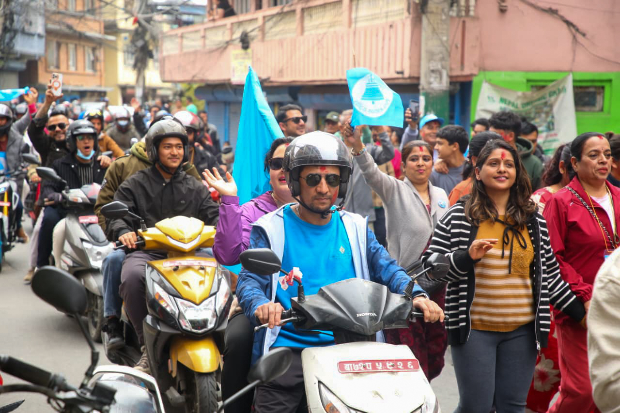 विजयी र्यालीमा रास्वपाका नेता, कार्यकर्ताहरु उत्साहका साथ सहभागी भएका छन्।