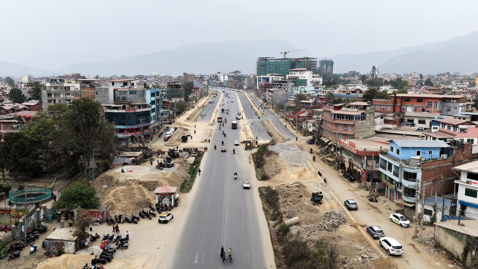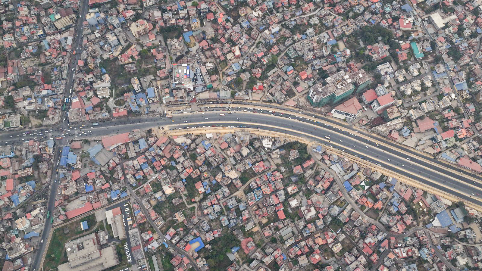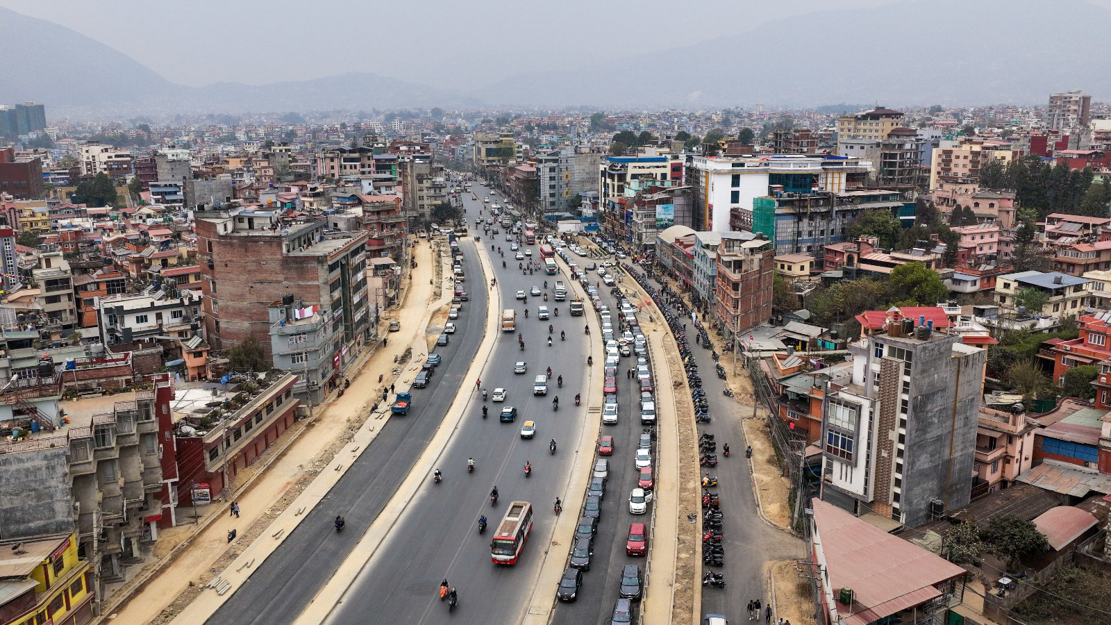 काठमाडाैं। काठमाडौं उपत्यकाको चक्रपथ (रिङरोड)को विस्तारको काम धमाधम भइरहेको छ। २७ किलोमिटर खण्डमध्ये हाल कलंकीदेखि बसुन्धरासम्मको ८.२ किलोमिटर खण्डले नयाँ रुप पाइरहेको छ। बसुन्धरा क्षेत्रको आकाशबाट ड्रोन क्यामेरामाफैत कैद गरिएको दृश्य।