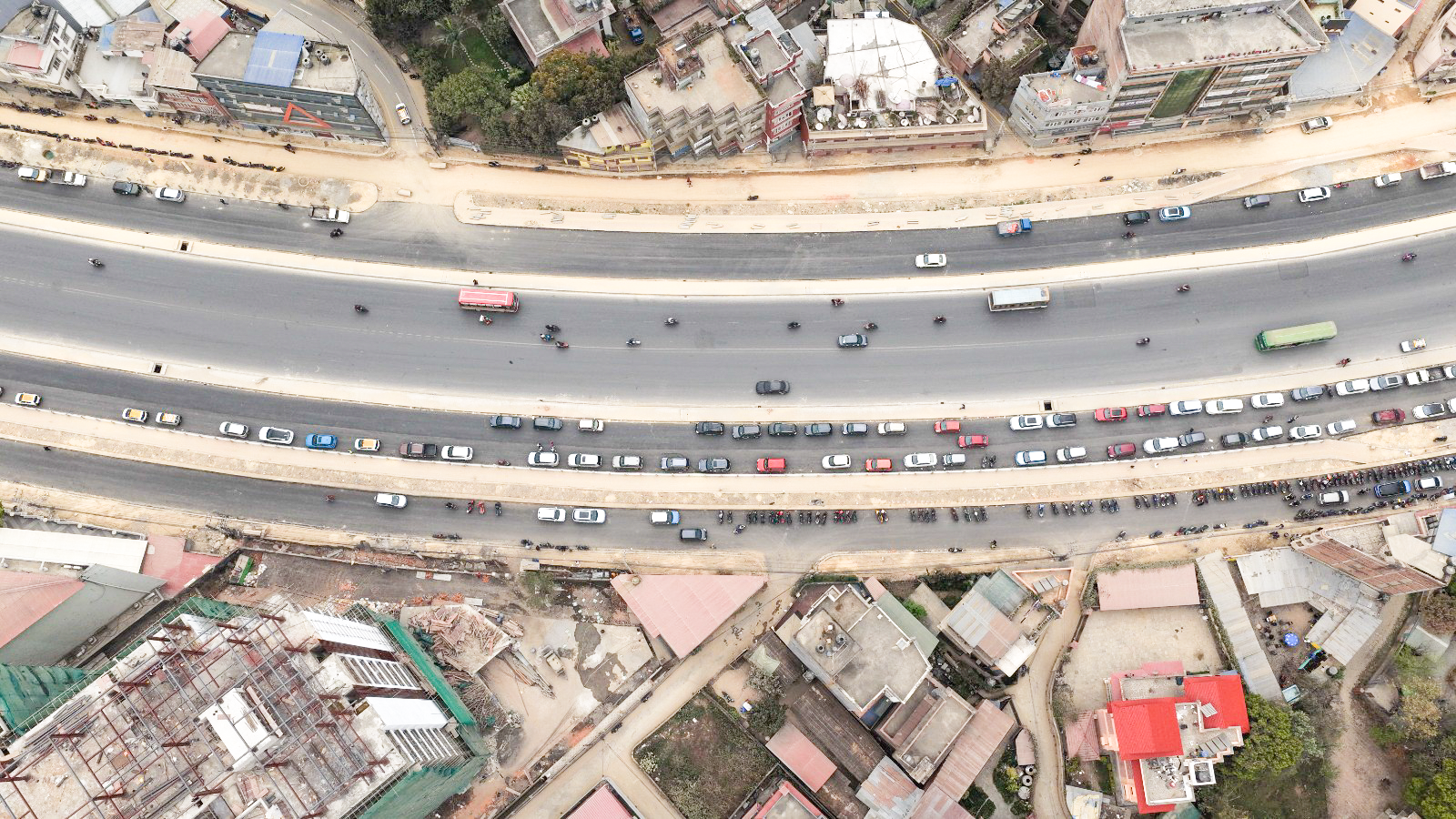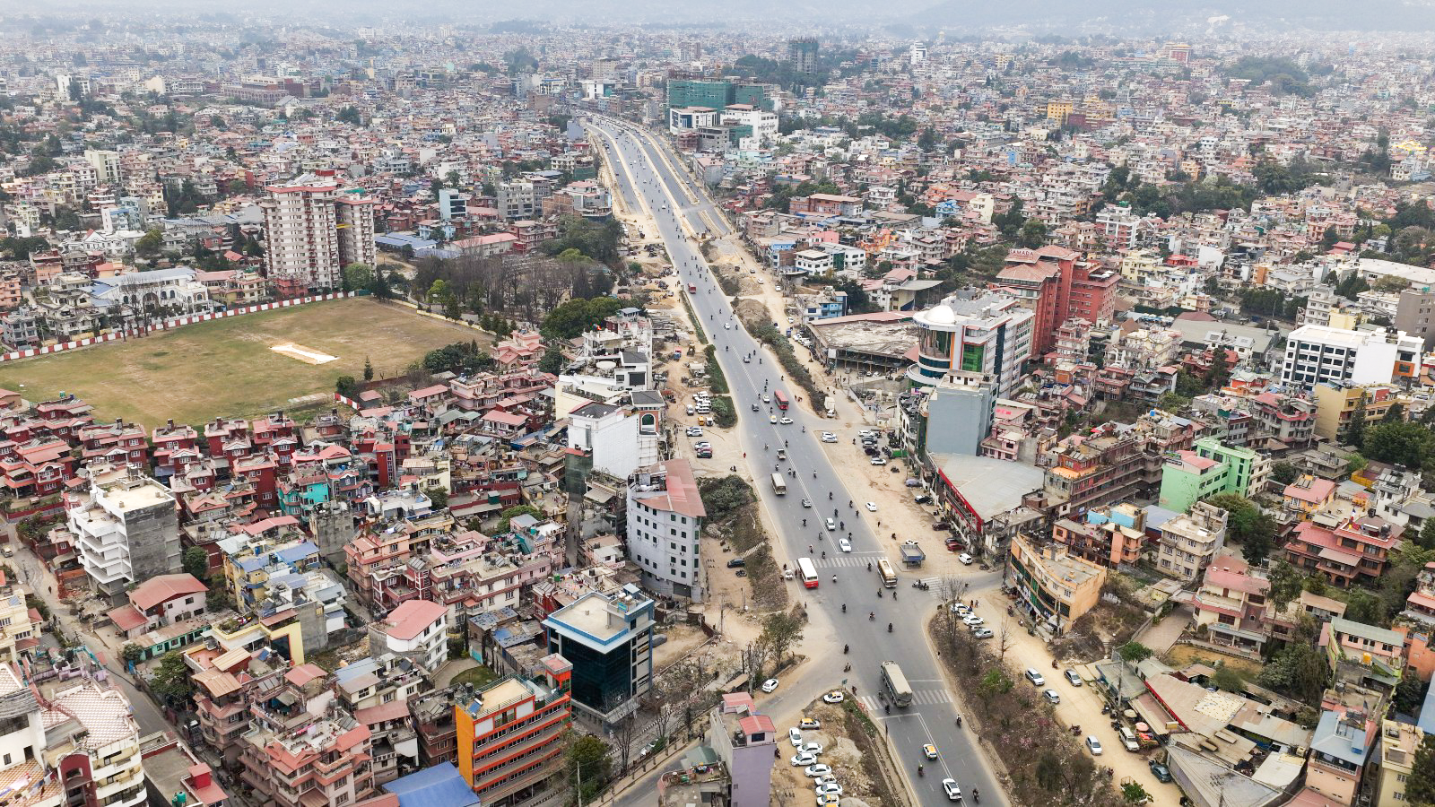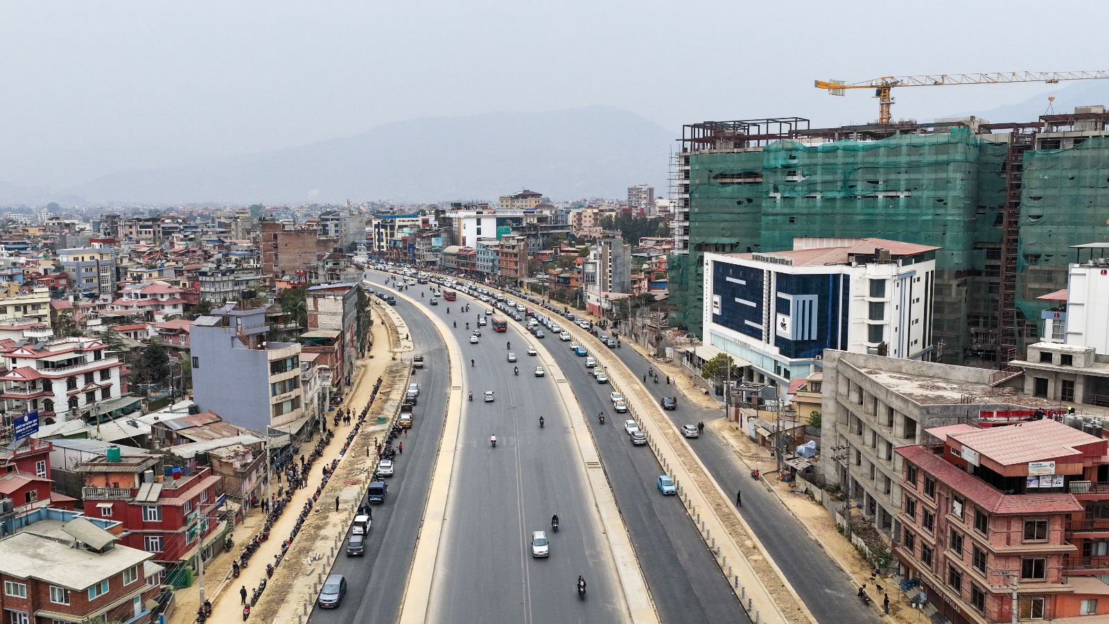 काठमाडाैं। काठमाडौं उपत्यकाको चक्रपथ (रिङरोड)को विस्तारको काम धमाधम भइरहेको छ। २७ किलोमिटर खण्डमध्ये हाल कलंकीदेखि बसुन्धरासम्मको ८.२ किलोमिटर खण्डले नयाँ रुप पाइरहेको छ। बसुन्धरा क्षेत्रको आकाशबाट ड्रोन क्यामेरामाफैत कैद गरिएको दृश्य।