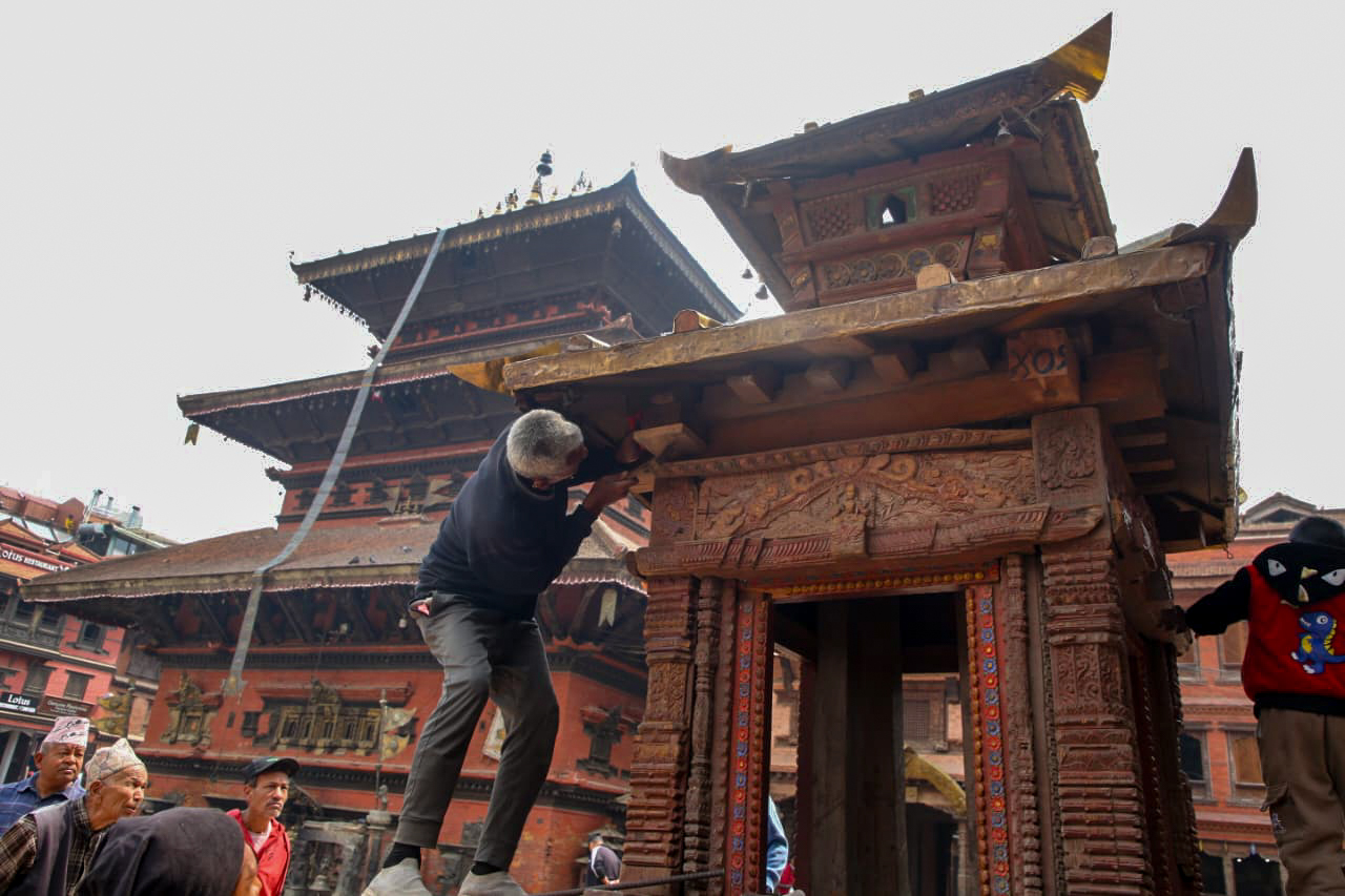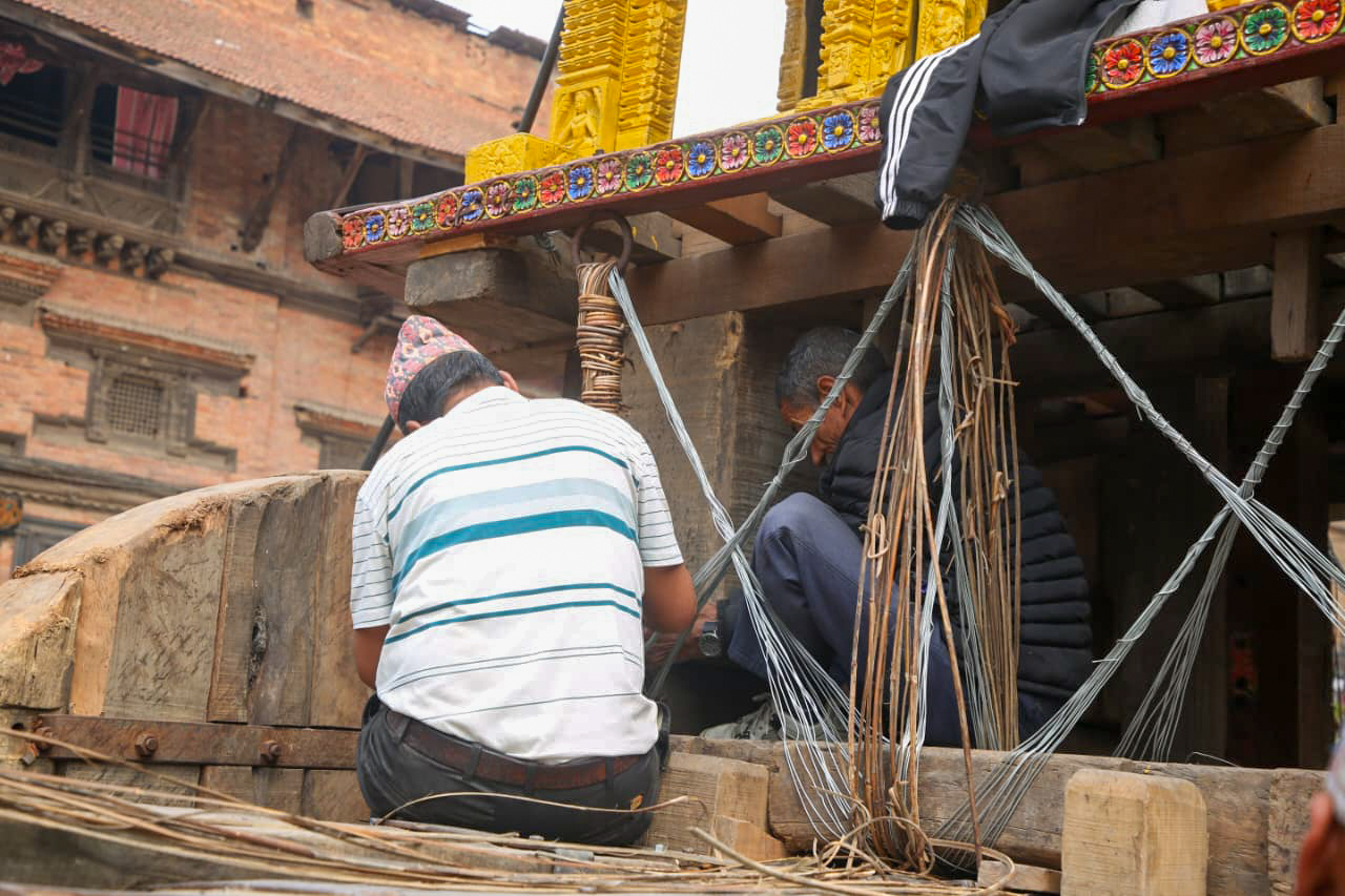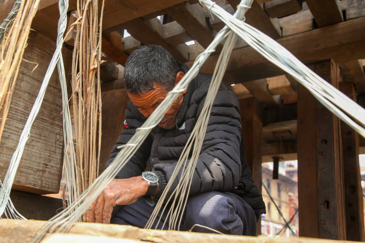 बिस्काः जात्राका लागि श्रीभैरवनाथको रथ निर्माण अन्तिम चरणमा (तस्विरहरू)