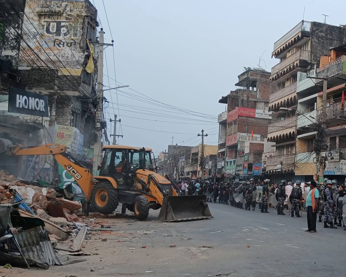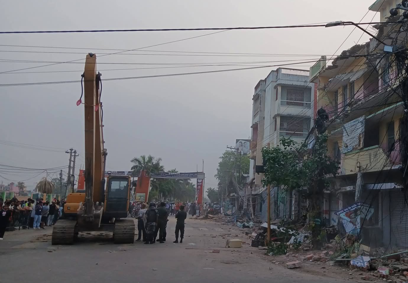 आइतबार बिहानैदेखि सुरक्षाकर्मीको बाक्लो उपस्थितिमा संरचना भत्काउने काम भइरहेको छ। सम्भावित तनावलाई मध्यनजर गर्दै महानगरपालिकाको टोली र ठुलो सङ्ख्यामा सुरक्षा निकायलाई परिचालन गरिएको छ।