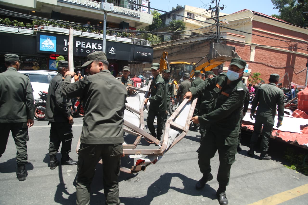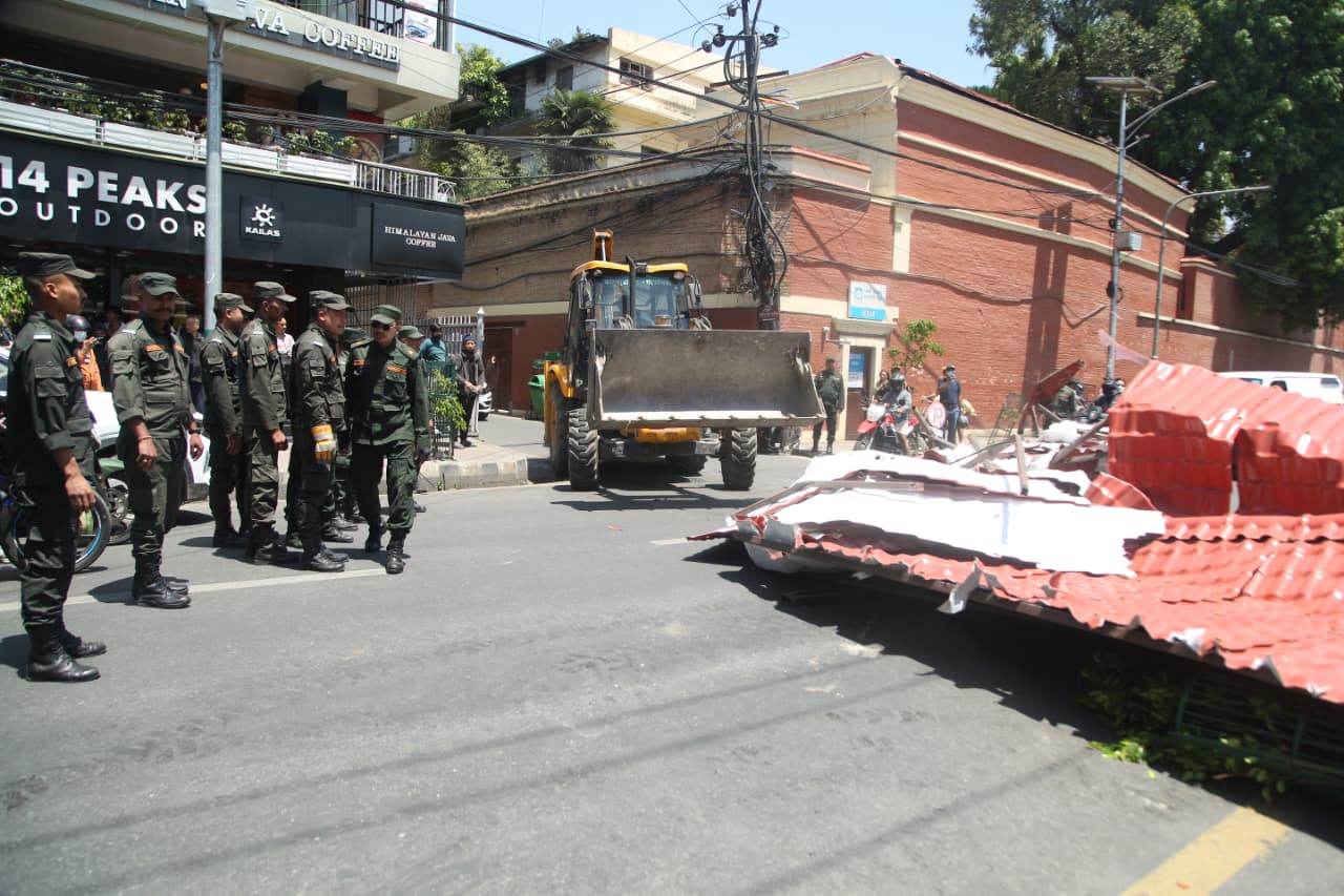 काडमाढाैं। काठमाडाैं महानगरपालिकाले त्रिदेवी मन्दिर ठमेलमा बनेको अनाधिकृत संरचना भत्काएकाे छ। आज काठमाडौं महानगरपालिका-२७ त्रिदेवी मन्दिर ठमेलमा बनेको अनाधिकृत संरचनामा नगर प्रहरीले डाेजर चलाएकाे हाे।