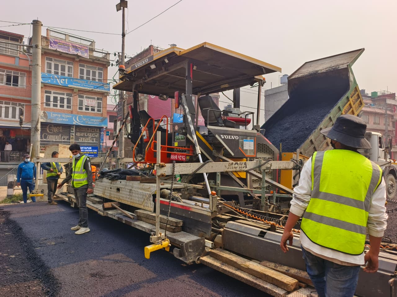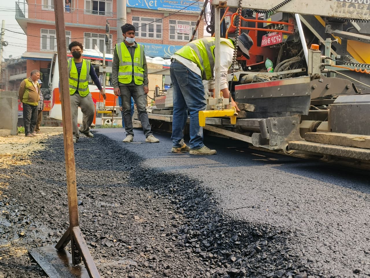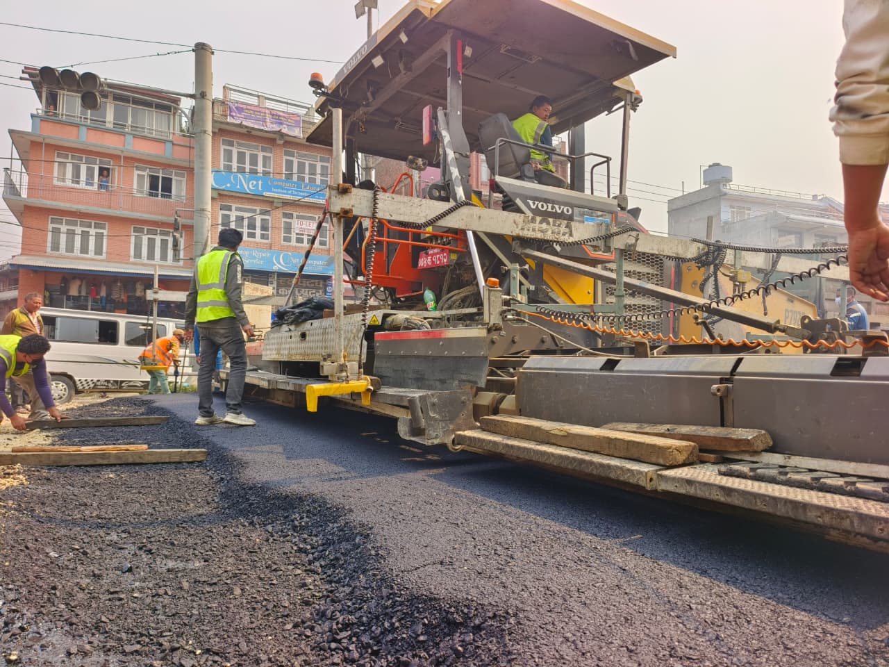 काठमाडाैं। भक्तपुरको सूर्यविनायक-जगाती सडकखण्डमा कालोपत्रे गर्ने काम तीव्र गतिमा अघि बढाइएको छ।