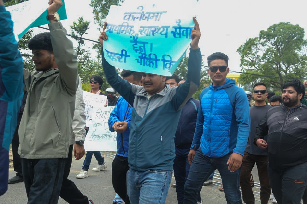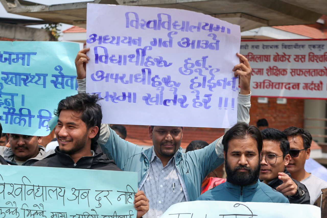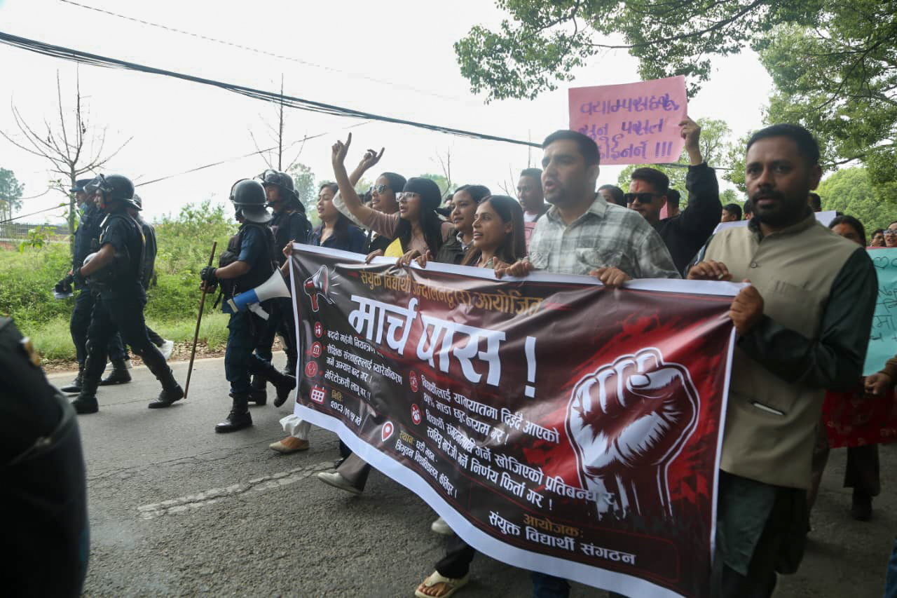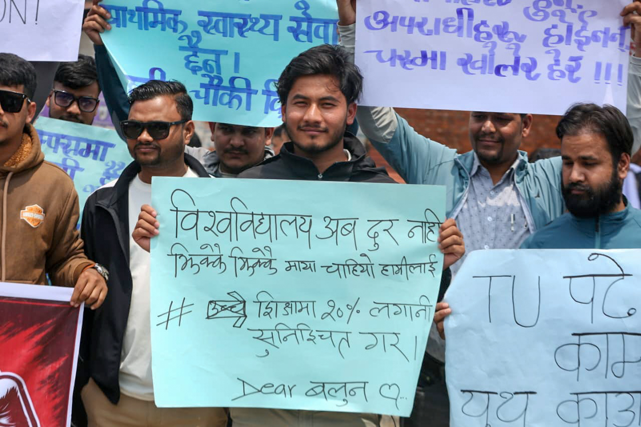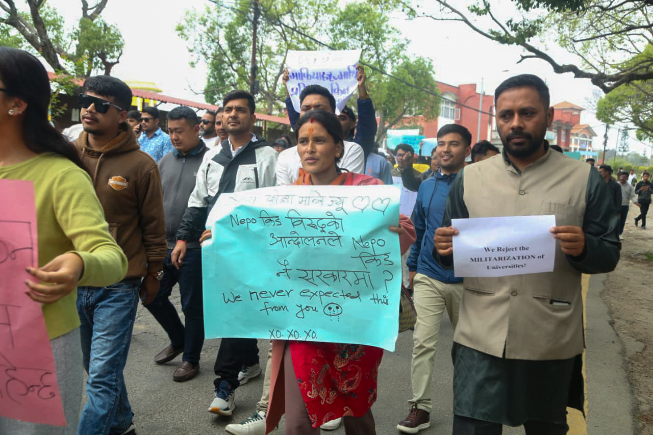 काठमाडाैं। त्रिभुवन विश्वविद्यालयमा संयुक्त विद्यार्थी संंगठनले आज विभिन्न नारासहित प्रर्दशन गरेका छन्।