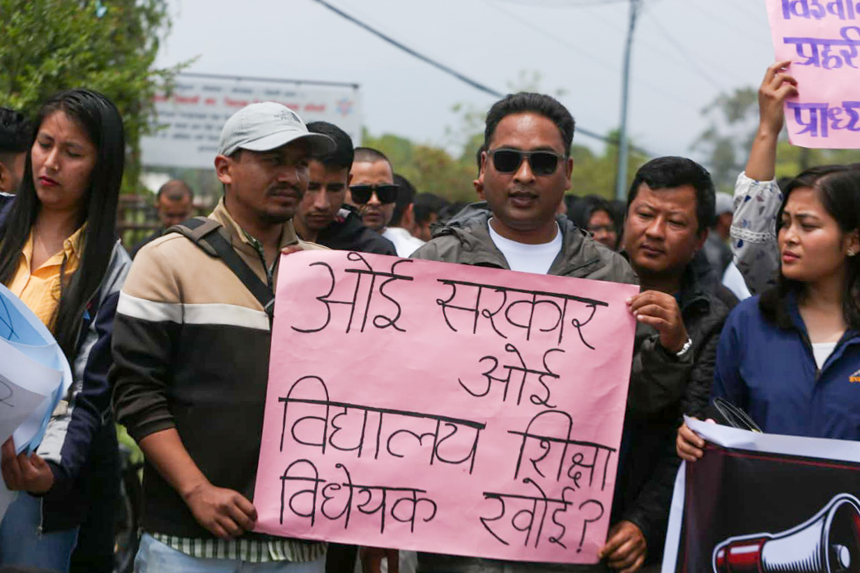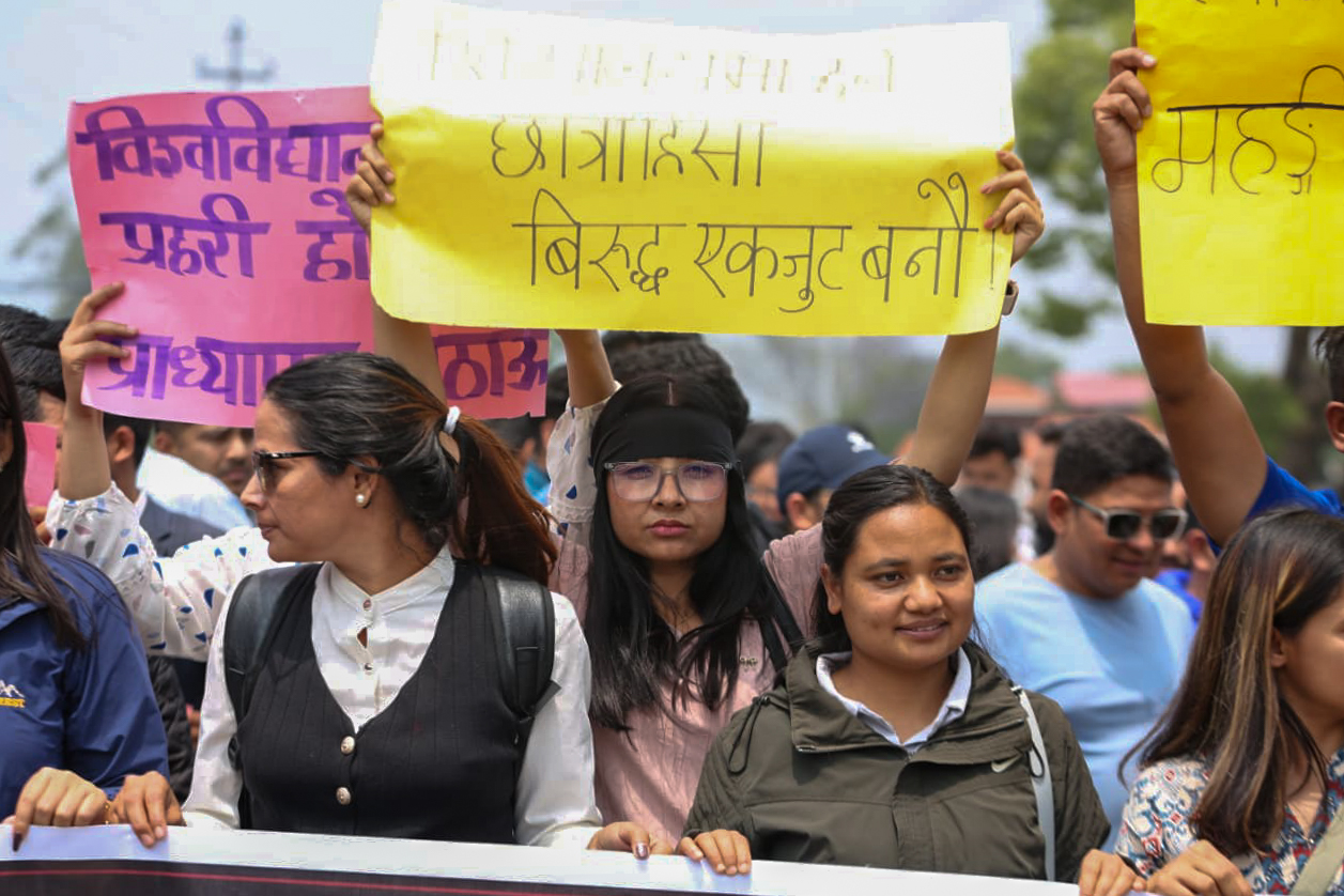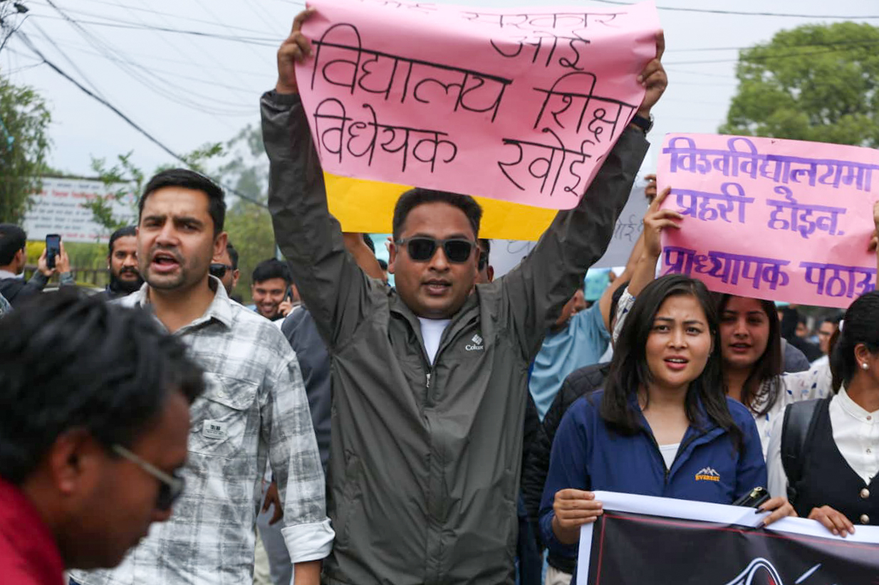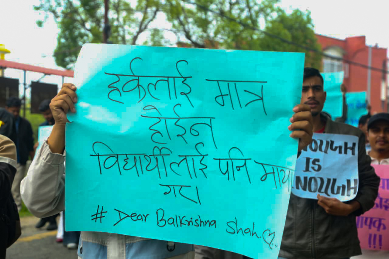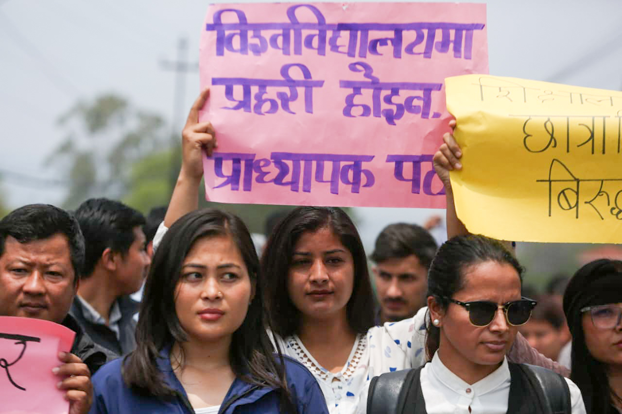 उनीहरुले शैक्षिक संस्थाहरुमा हुने छात्रा हिंसा बिरुद्ध एकजुट बनौँ, क्याम्पसहरु सुन पसल होइनन, विश्व विद्यालयमा प्रहरी होइन प्राध्यापक पठाउँ, ओइ सरकार ओई विद्यालय शिक्षा विद्येयक खोई लेखिएका पम्पलेट सहित प्रदर्शन गरेका हुन्।