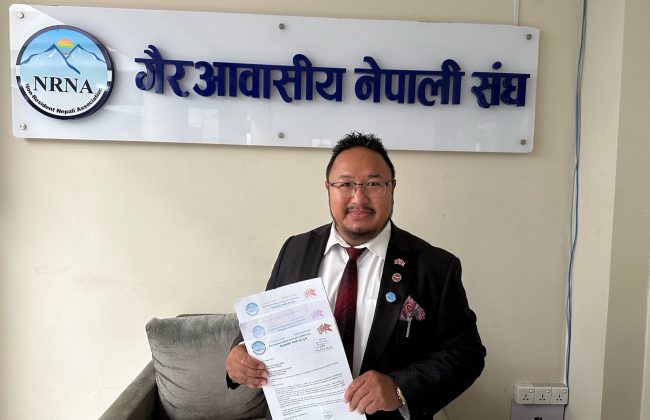 एनआरएनए उपाध्यक्षमा खगेन्द्र न्यौपानेको उम्मेदवारी दर्ता