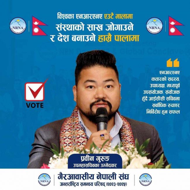 एनएनआरएनए उपमहासचिवमा प्रविन गुरुङद्वारा उम्मेदवारी घोषणा